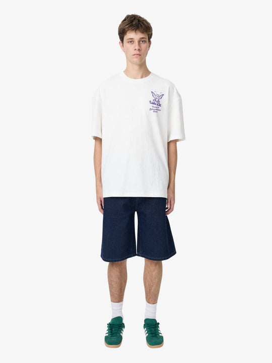 The 24 HR Tee by Deus showcases a standout back print with a vibrant orange cartoon bug. This tee is finished with “Deus Ex Machina – Bordeaux France Records” text.