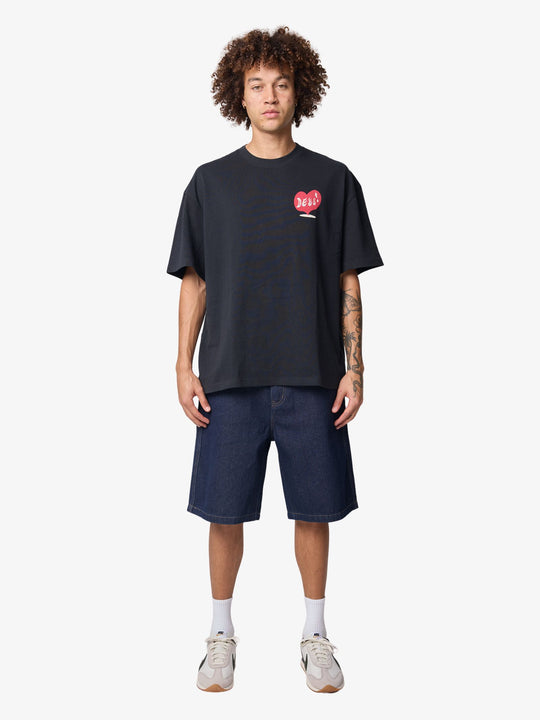 This Deep Cut Tee rom Deus is cut from recycled cotton jersey with an oversized fit. It features a crew neckline, a chest heart logo print, and a large back print with “Records and Publishing” text and heart graphic.