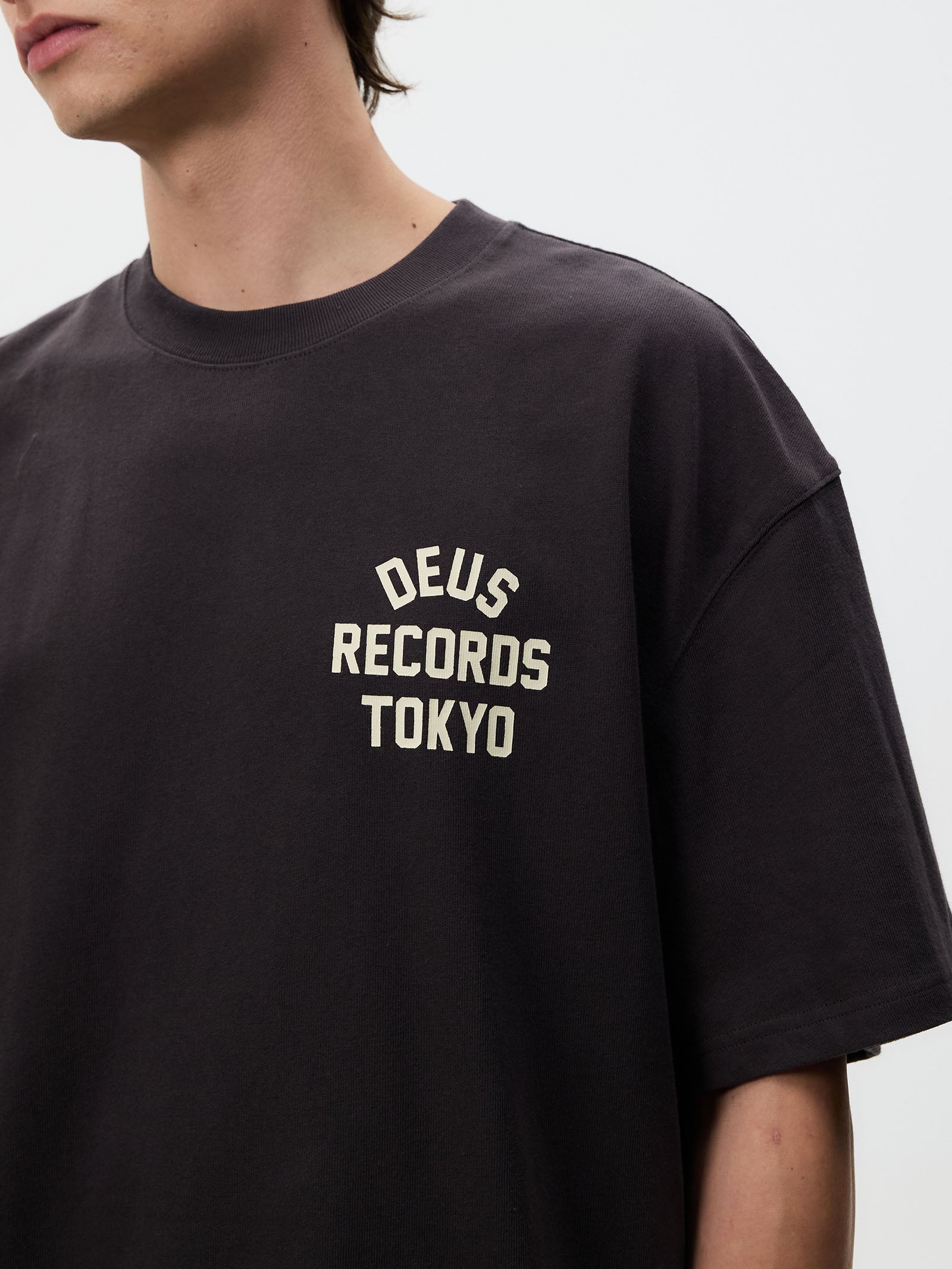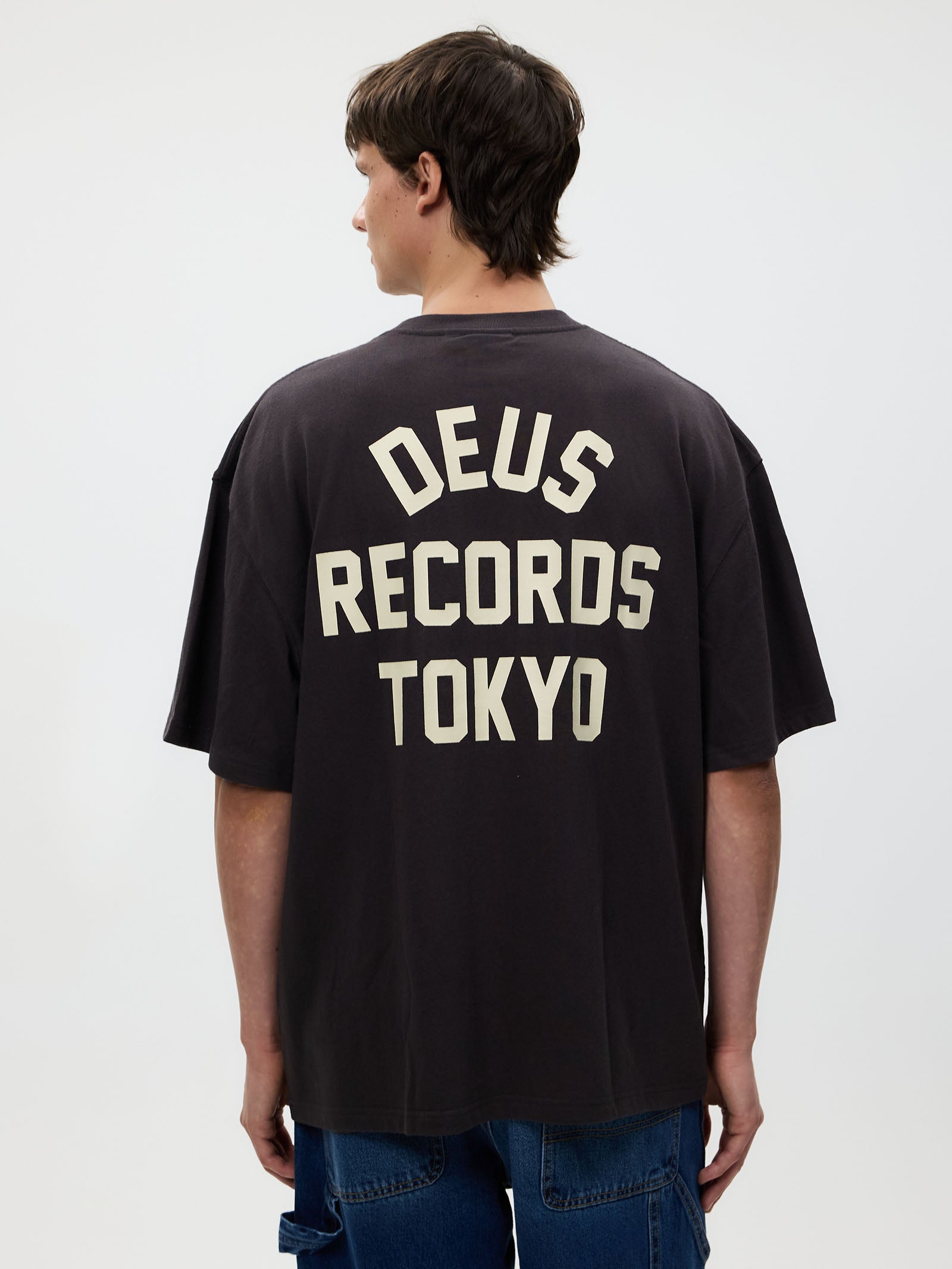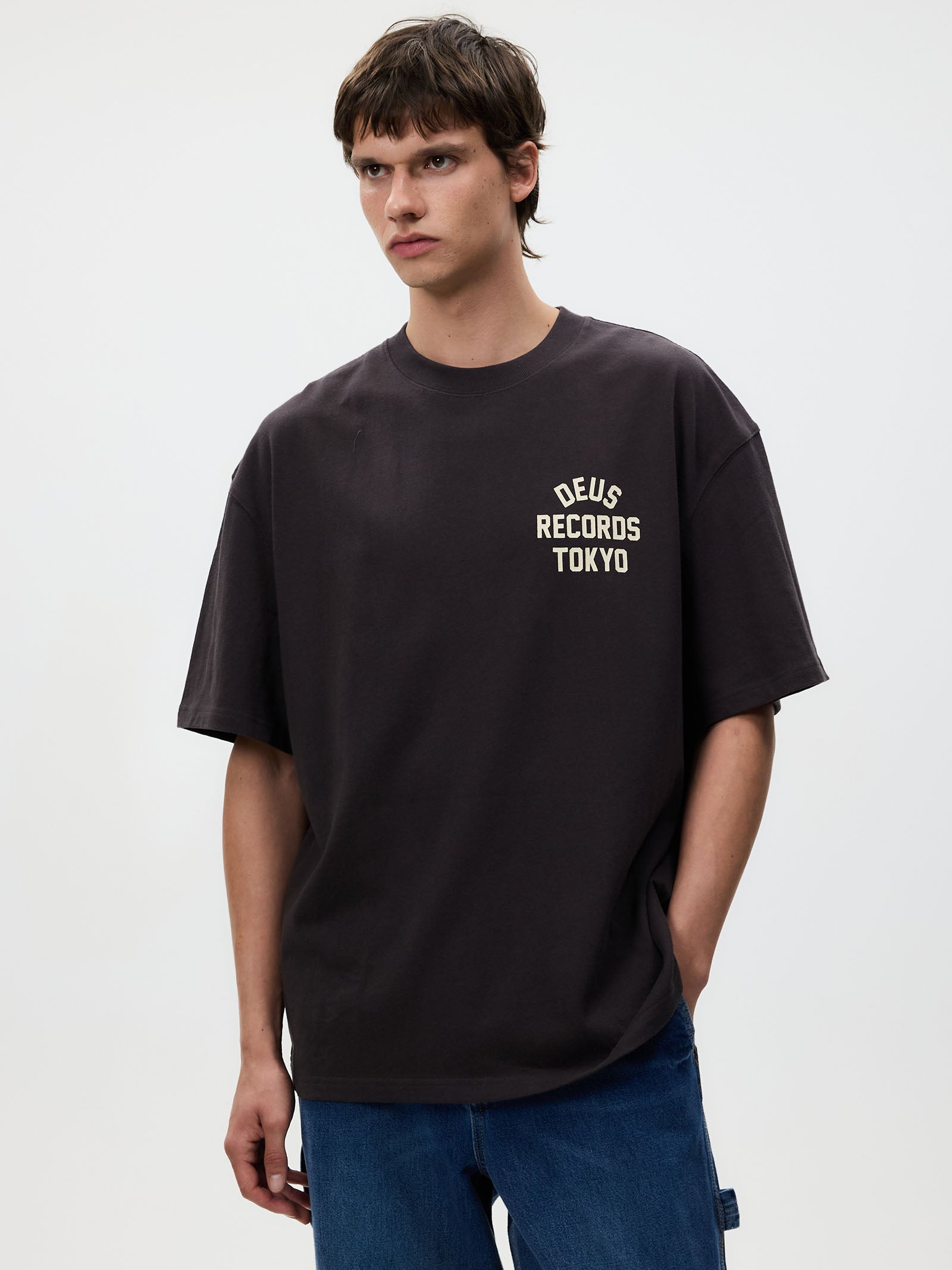 The Drive Far Away Tee in Anthracite by Deus is crafted from premium 100% cotton. This relaxed-fit tee features a bold front and back print.