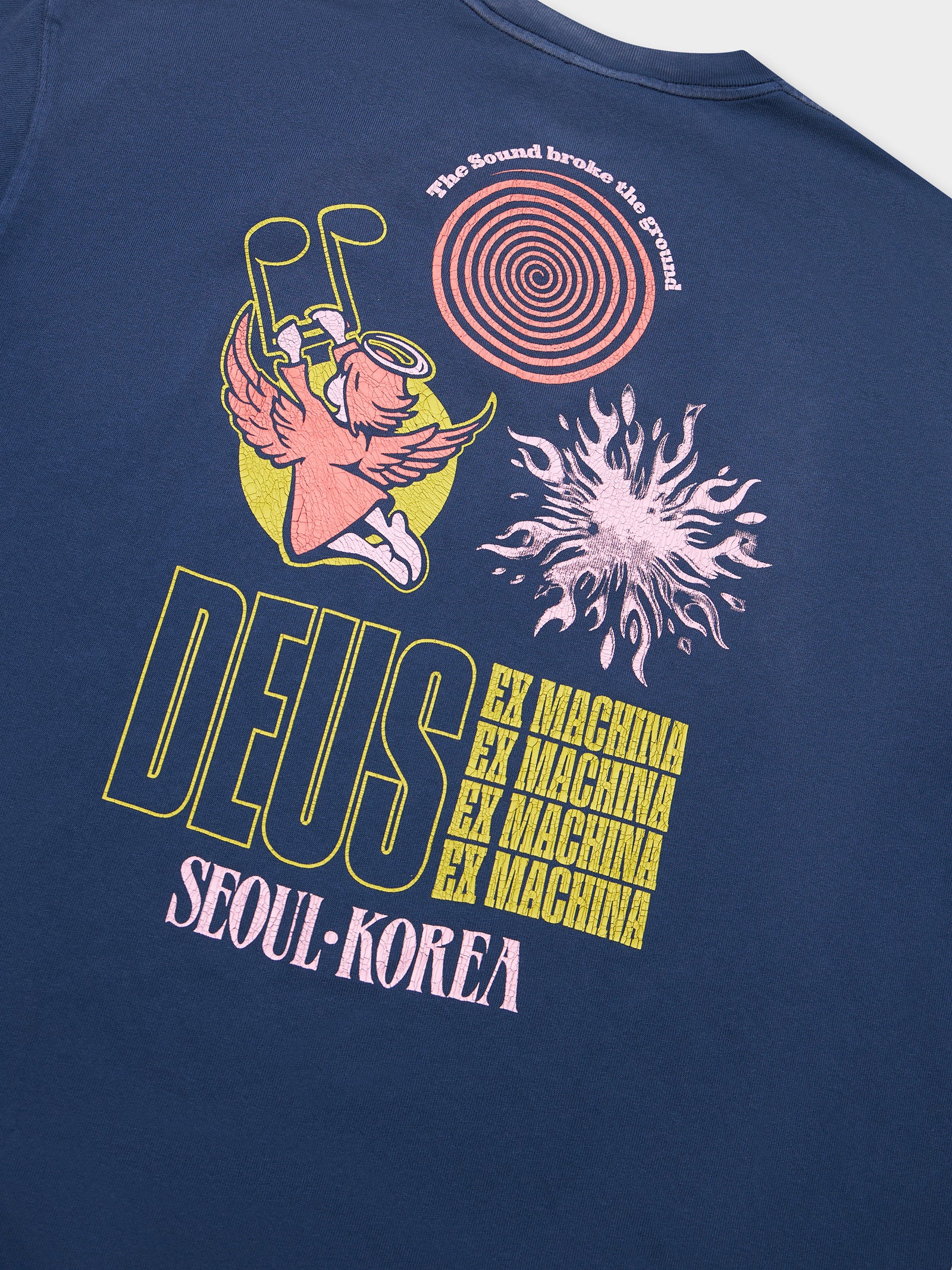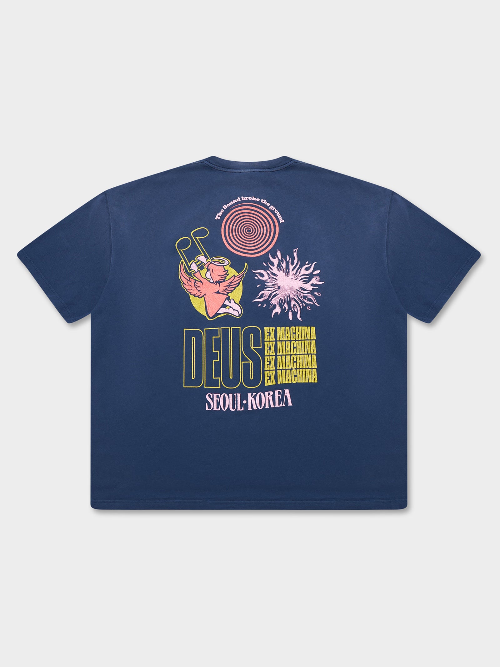 The Good Gracious Tee in Navy by Deus is crafted from high-quality cotton. This tee features a bold graphic on the front and back.