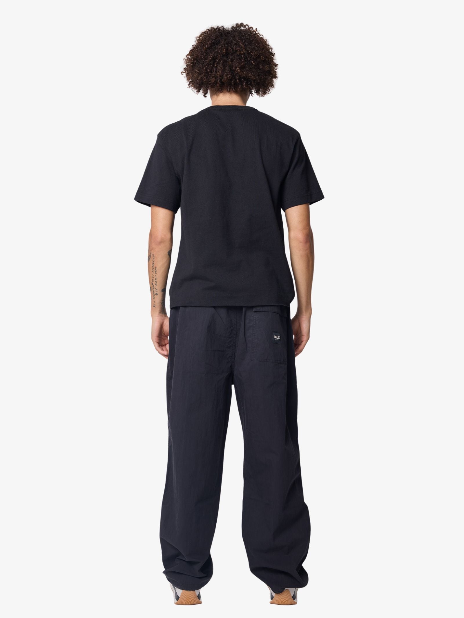 The Remi Parachute Pants from Deus is cut in a loose fit from a cotton and nylon mix. It features an elasticated waistband with drawcord, multiple pockets, and a heavy garment wash finish.