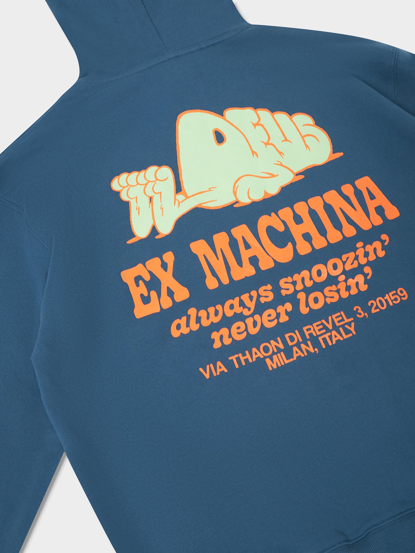 The Snoozin Hoodie features a relaxed fit with adjustable drawstrings around the hood. Finished off with a Snoozin graphic on the back, this piece by Deus is sure to add some colour to your outfits.