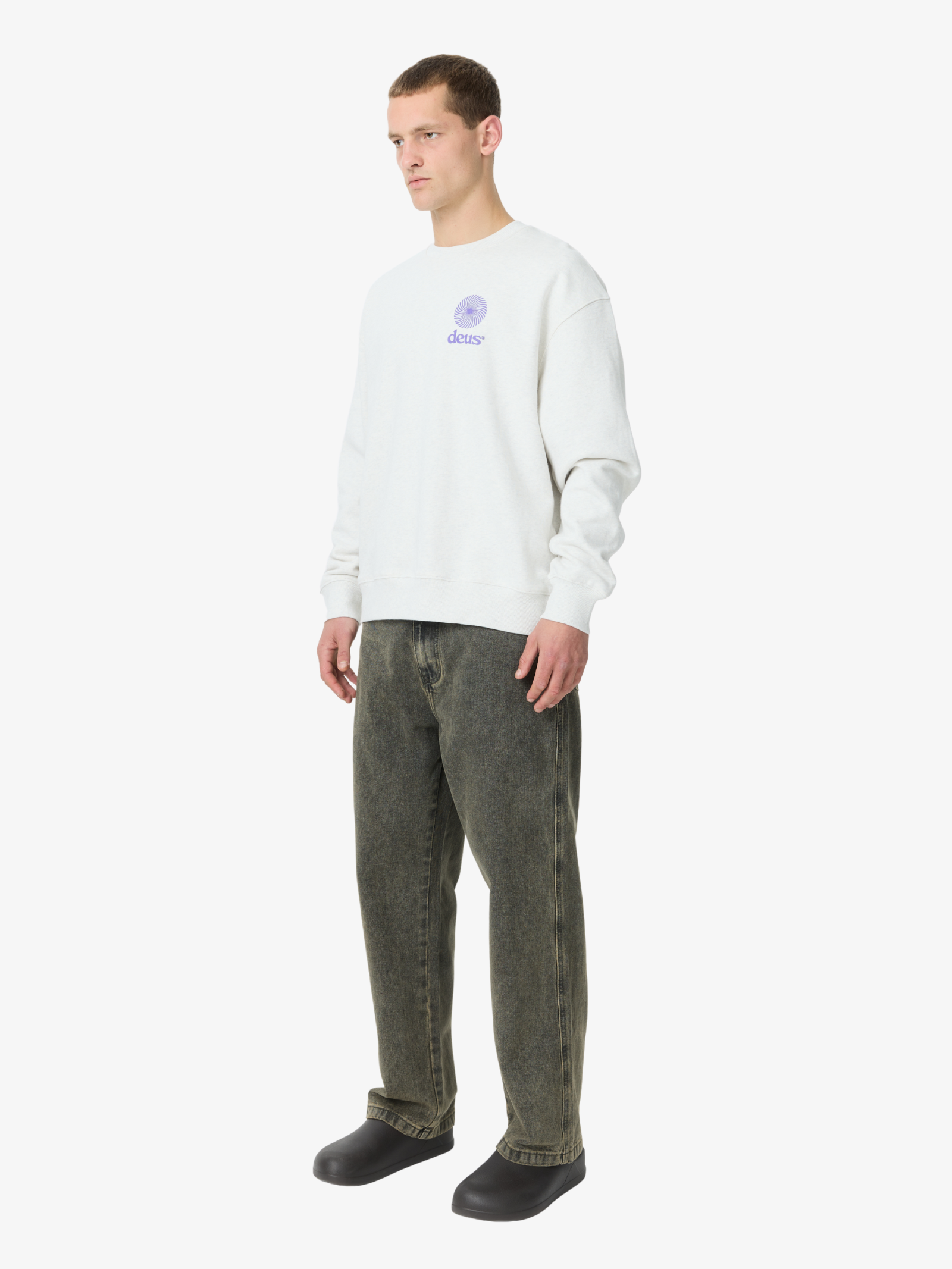 The Strata Crew in Light Grey Marle by Deus Ex Machina is crafted from premium cotton fleece. This long sleeve tee features a relaxed crewneck silhouette with ribbed trims and graphic on the chest and back.