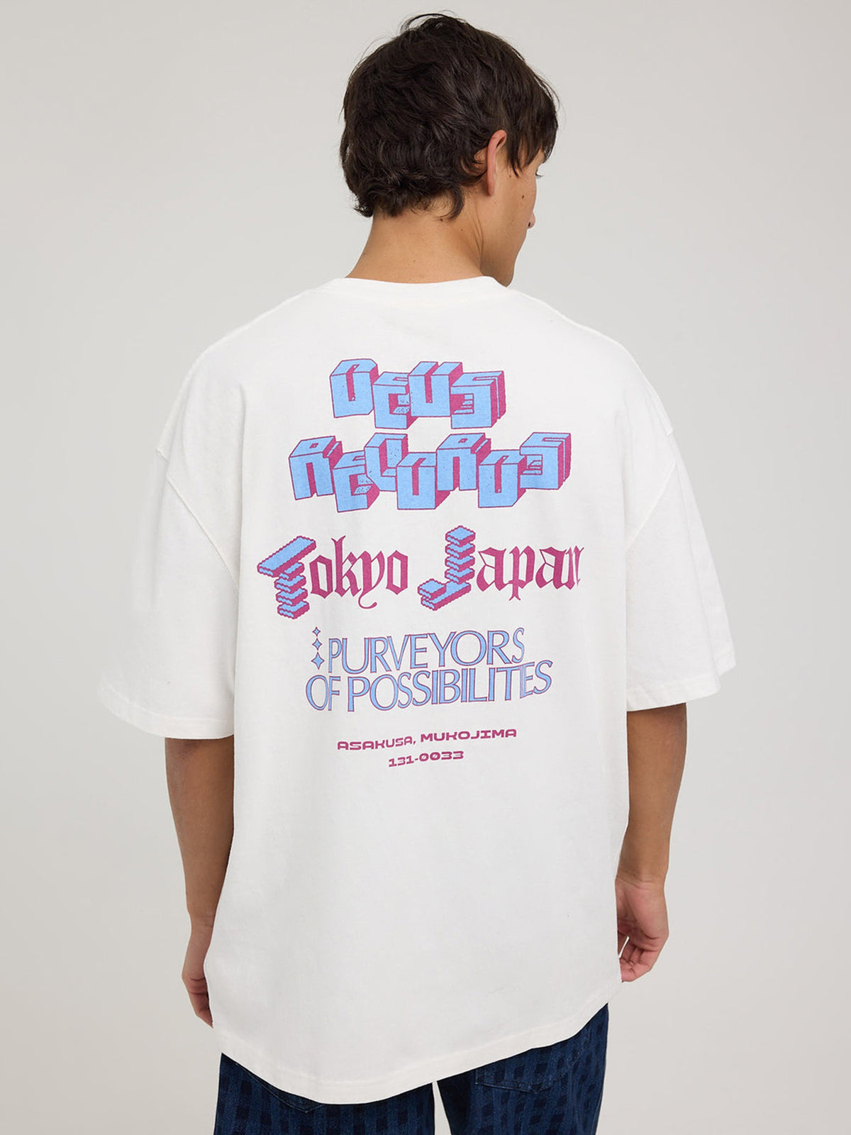 The Tokyo Block Tee in Vintage White celebrates Deus Ex Machina's presence in Tokyo. This tee pays tribute to the brand's international influence. The vintage white color gives it a classic, timeless appeal. Crafted from premium cotton, it ensures a soft and comfortable fit, making it a staple piece for any wardrobe.