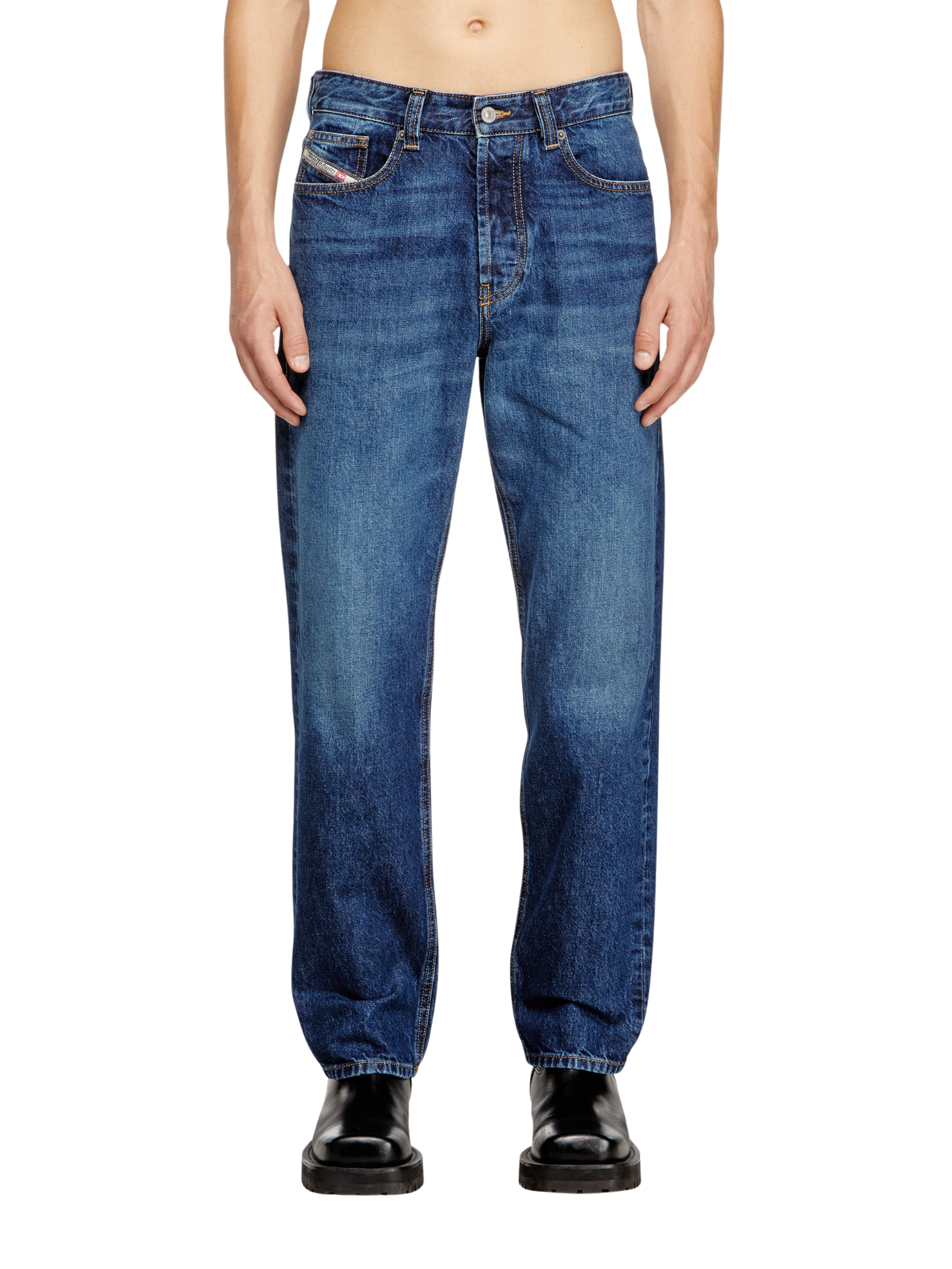The 2024 D-Macs in Mid Indigo by Diesel is designed with a regular fit, a medium waist, low crotch, and lightly tapered leg. This jean is crafted from fix denim made with organic cotton and is finished with a button fly.