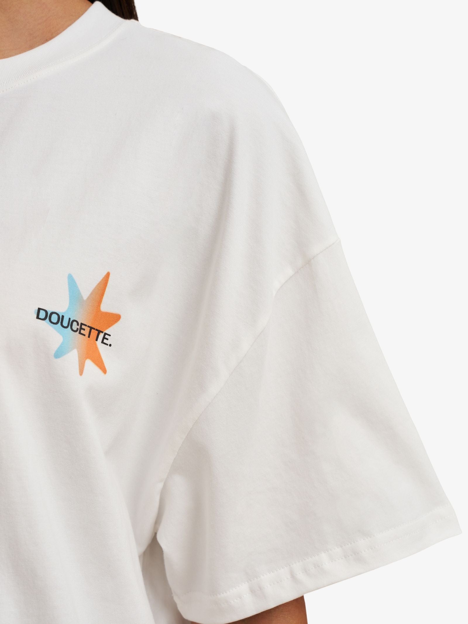 The Unisex Museum Box Tee from Doucette comes in a relaxed cut with a ribbed crew neck, finished with a small chest logo and a large star print on the back.