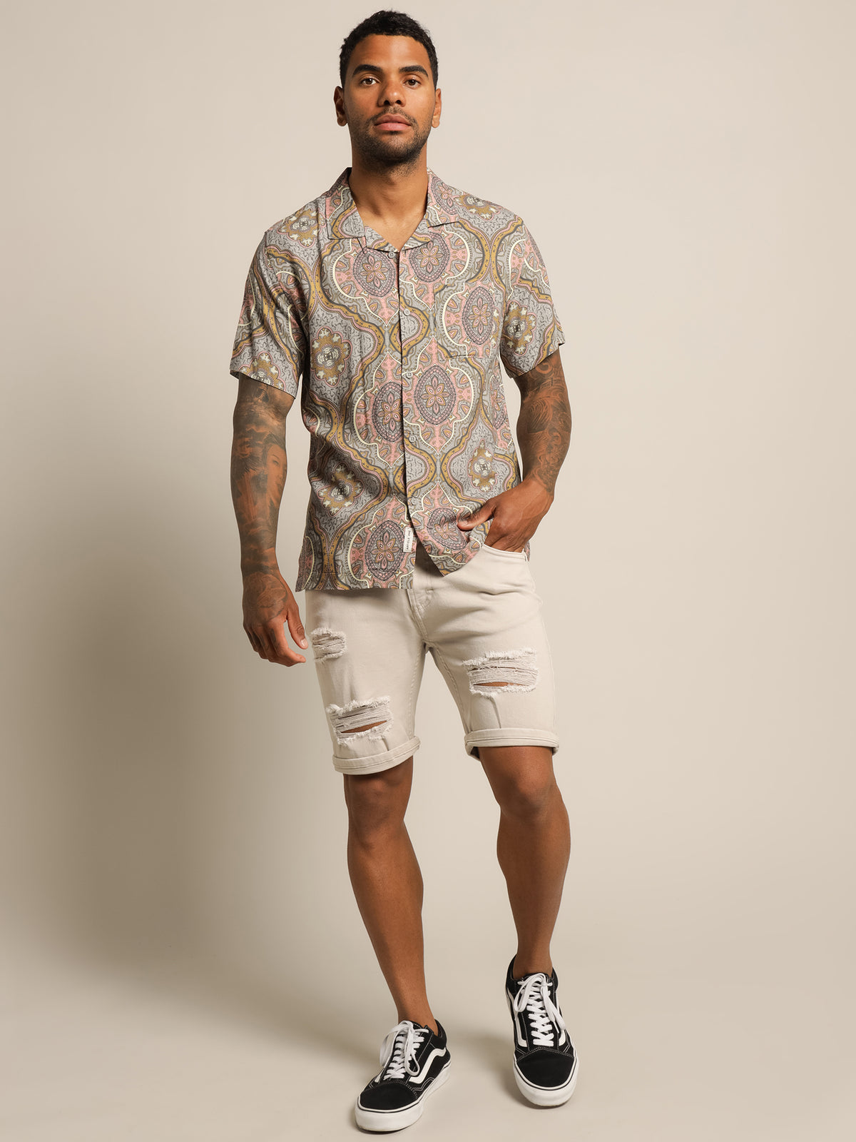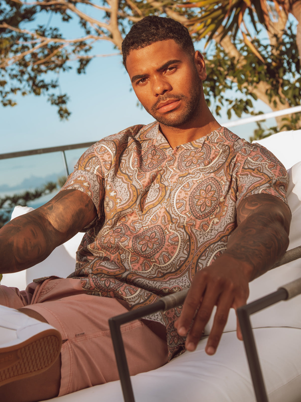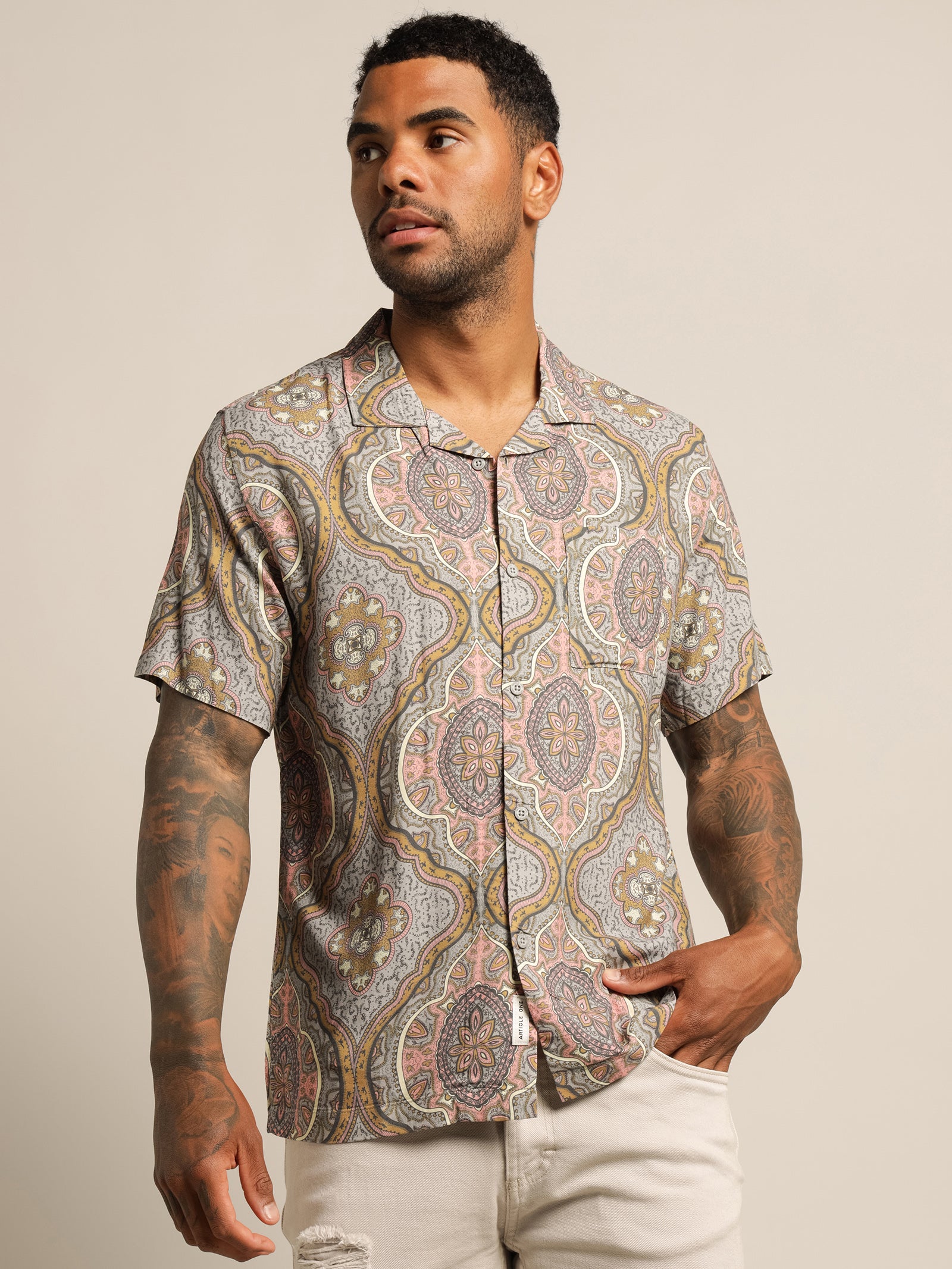 Feels nice on, nice material. True to size. Great pattern! You could really dress this shirt up or down. For any event!