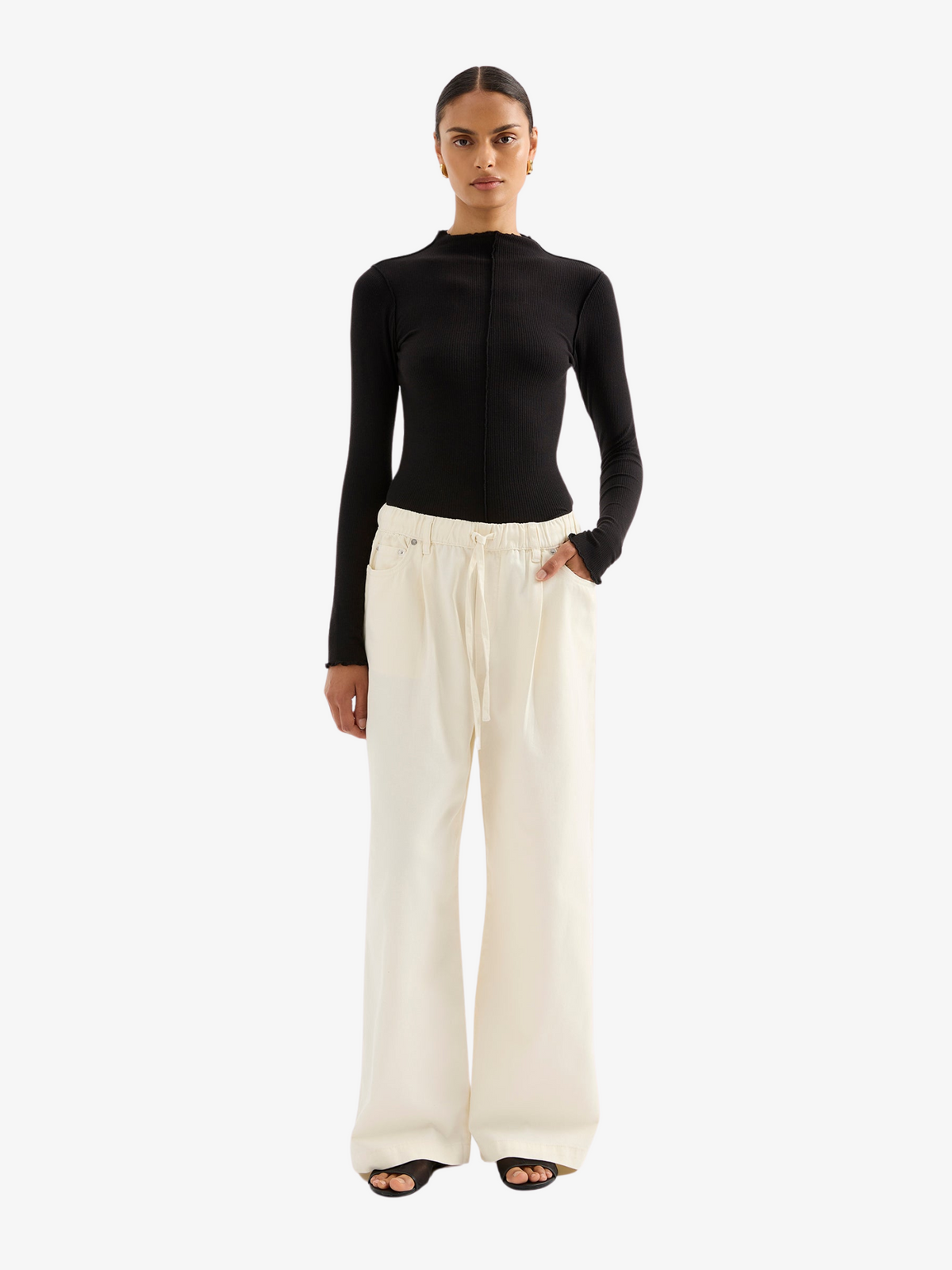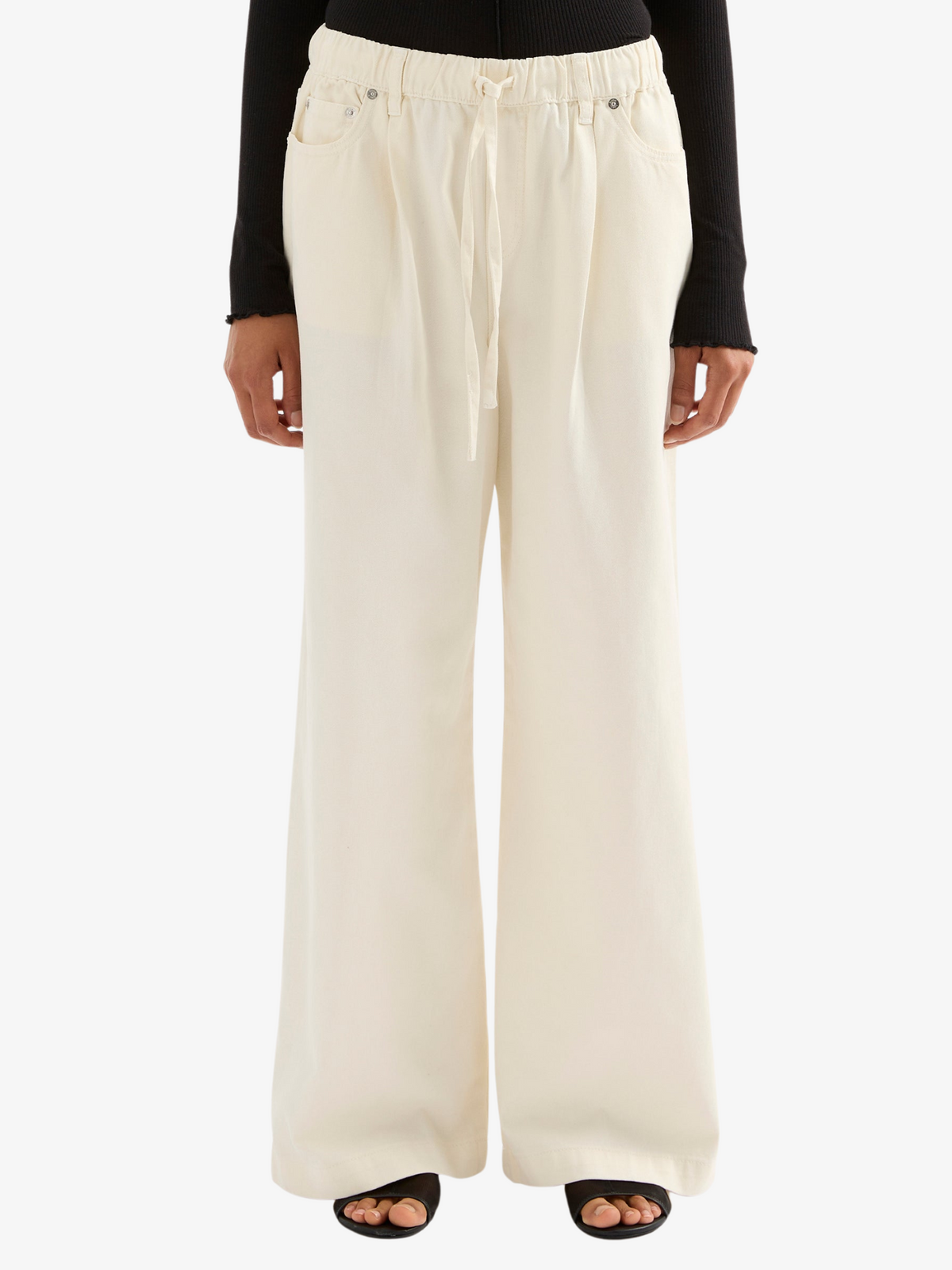 The Esme Drawstring Jean from Nude Lucy is crafted from premium cotton and offers a relaxed, straight-leg silhouette. It features an elasticated waistband with a drawstring tie.