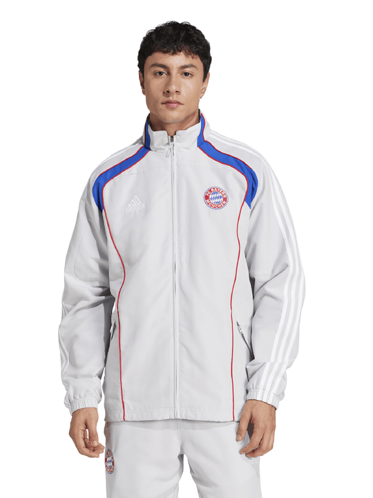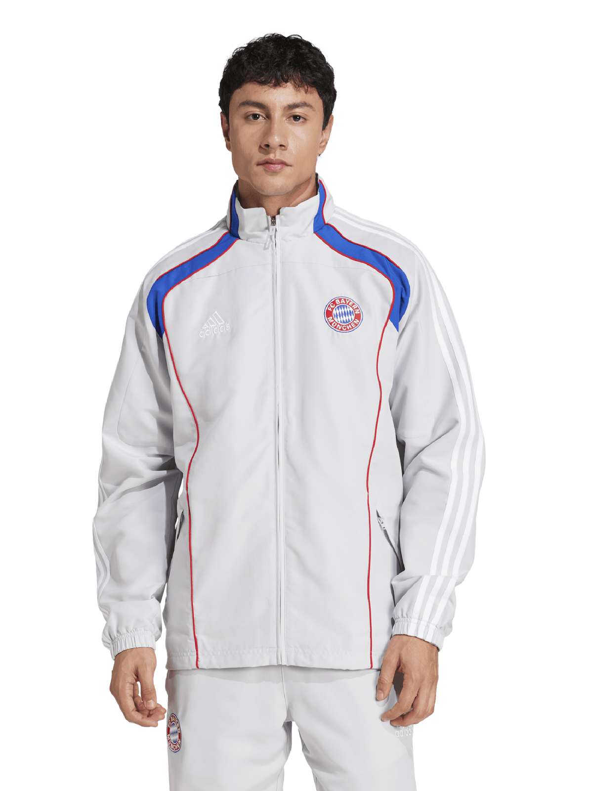 Classic meets contemporary with the FC Bayern Track Top from Adidas. Clean lines, full zip closure, and subtle piping bring 2010s energy, while side pockets add functional flair. Crafted entirely from lightweight recycled polyester, it's built for comfort and mindful wear.