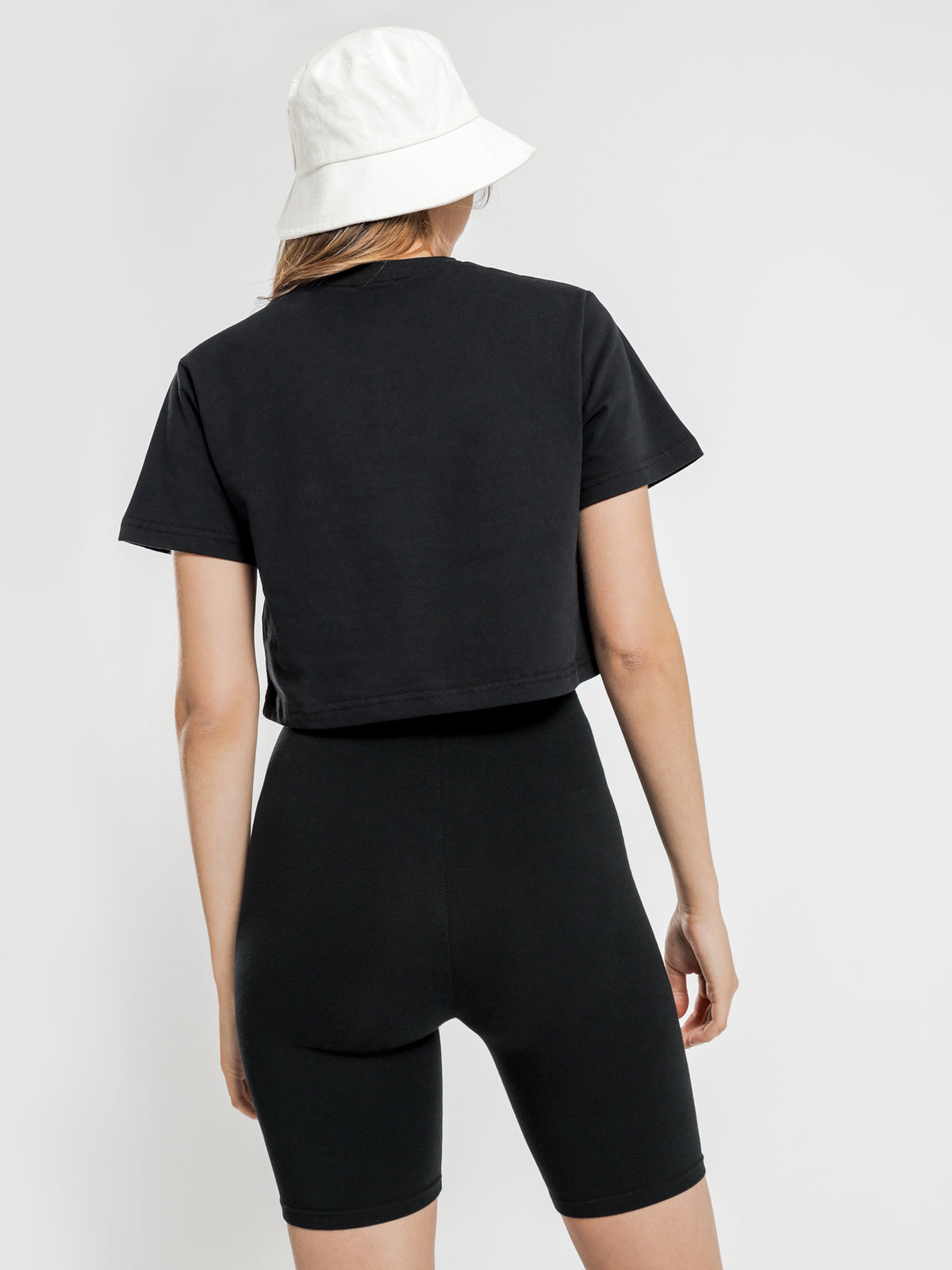 We all love a great cropped tee. Add this summer staple to your wardrobe and pair it with some black bike shorts and white sneakers for an easy throw together.