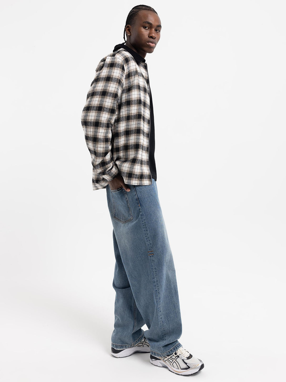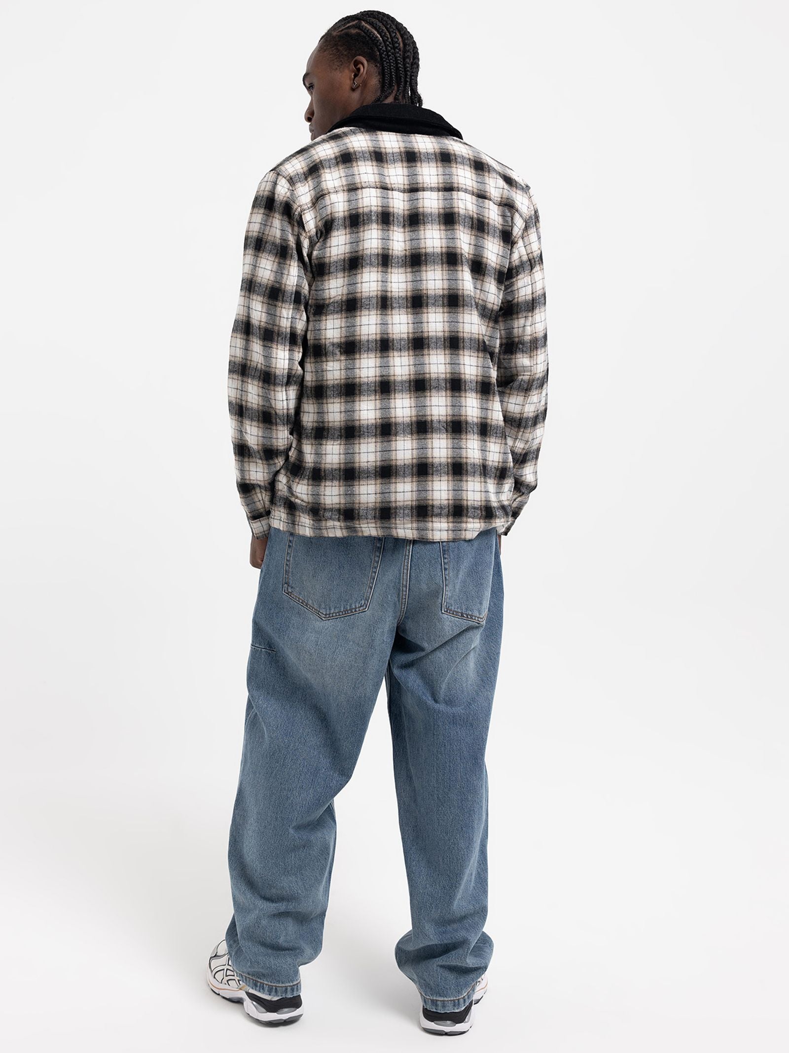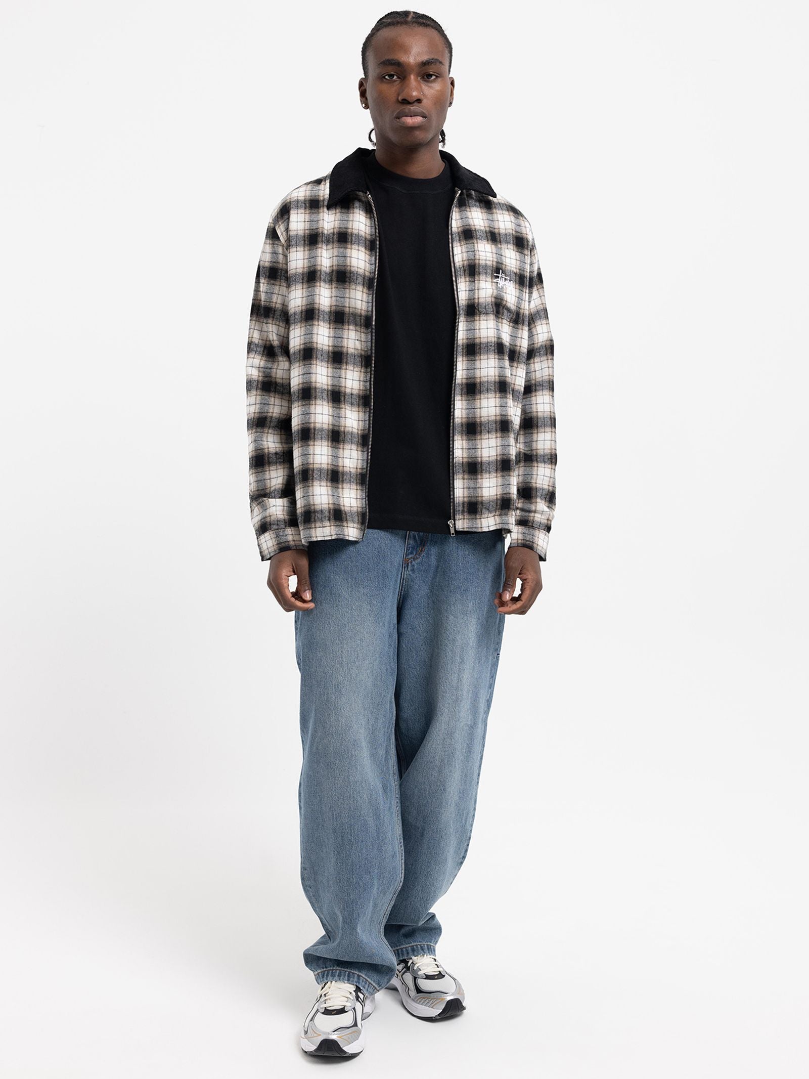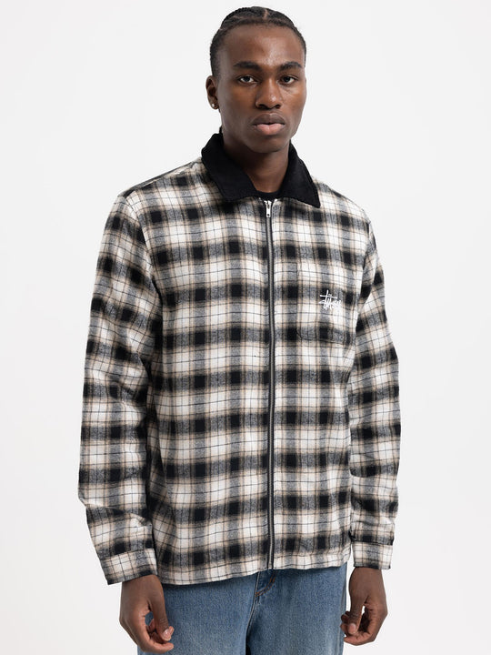 The Frank Plaid Zip Shirt features a #5 YKK metal zip closure, snaps at the cuffs, and convenient patch and side seam pockets. Designed with a Stüssy stock flag label, this shirt offers a relaxed fit for ultimate comfort. Elevate your style with this must-have zip shirt.