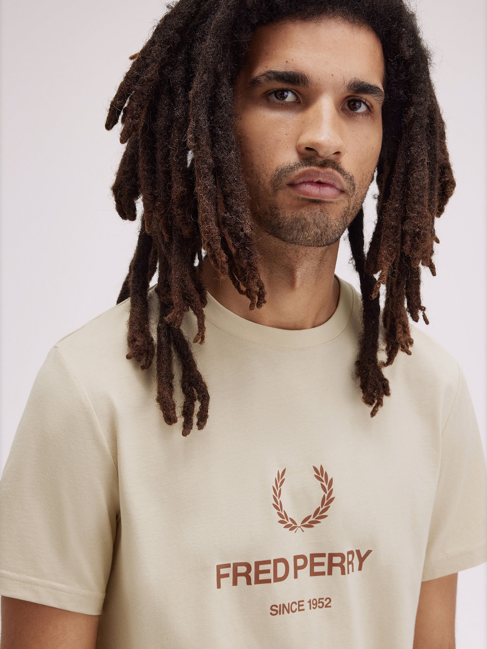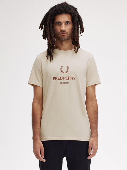 Crafted from soft cotton jersey, the Fred Perry Graphic T-Shirt combines comfort with standout style. Featuring a bold Laurel Wreath and Fred Perry branding at the centre chest, it makes an unmistakable statement. Designed with a ribbed crew neck and open cuffs, this tee offers a relaxed fit while maintaining a refined finish. Perfect for elevating casual outfits with heritage-inspired flair.