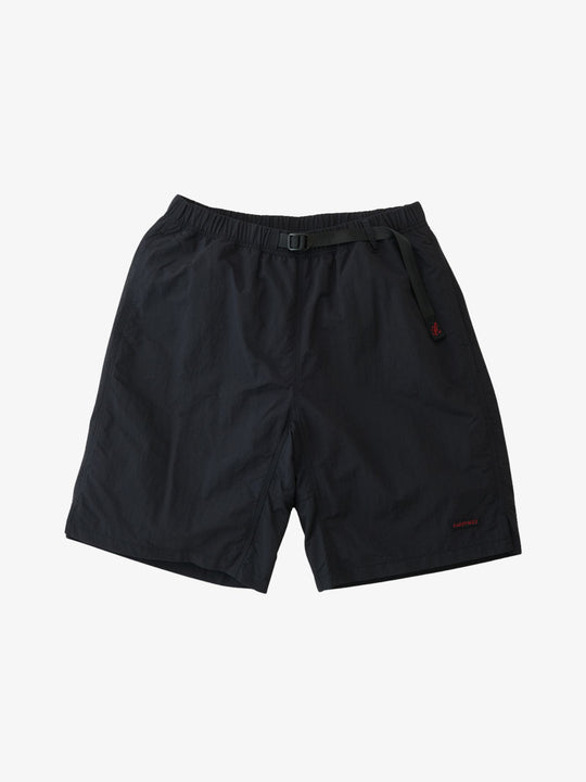 The Nylon Packable G-Shorts by Gramicci are a durable short constructed from Nylon material. They feature an elastic waist with a nylon webbing belt that allows for one-handed adjustment. These shorts include a gusseted crotch design and are resistant to chlorine.