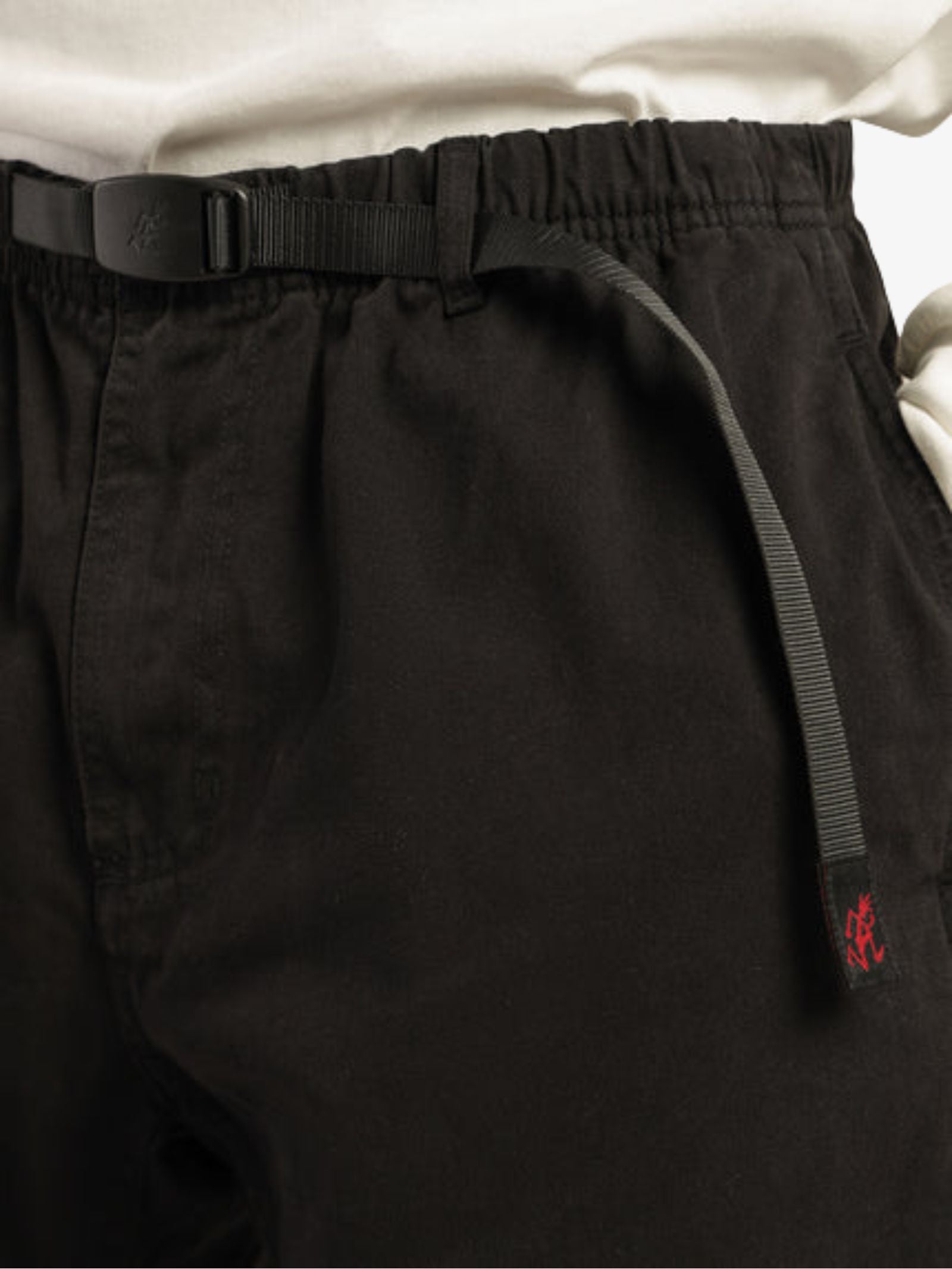 The Gramicci Pants are made from durable cotton twill with a gusseted crotch for added mobility. Designed with a low-rise, slightly tapered fit, they feature an integrated belt with buckle for an adjustable fit. The zip fly closure and multiple pockets provide functionality for outdoor and everyday use.