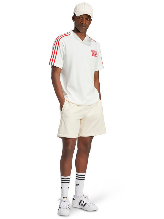 A masterpiece of a t-shirt with a high V-neckline for added elegance, crafted from a stretchy, luxurious material. Adorned with a subtle logo on the left chest and hemline, and accented with the iconic Three Stripes on the sleeves. Designed to offer a tailored, sophisticated fit.