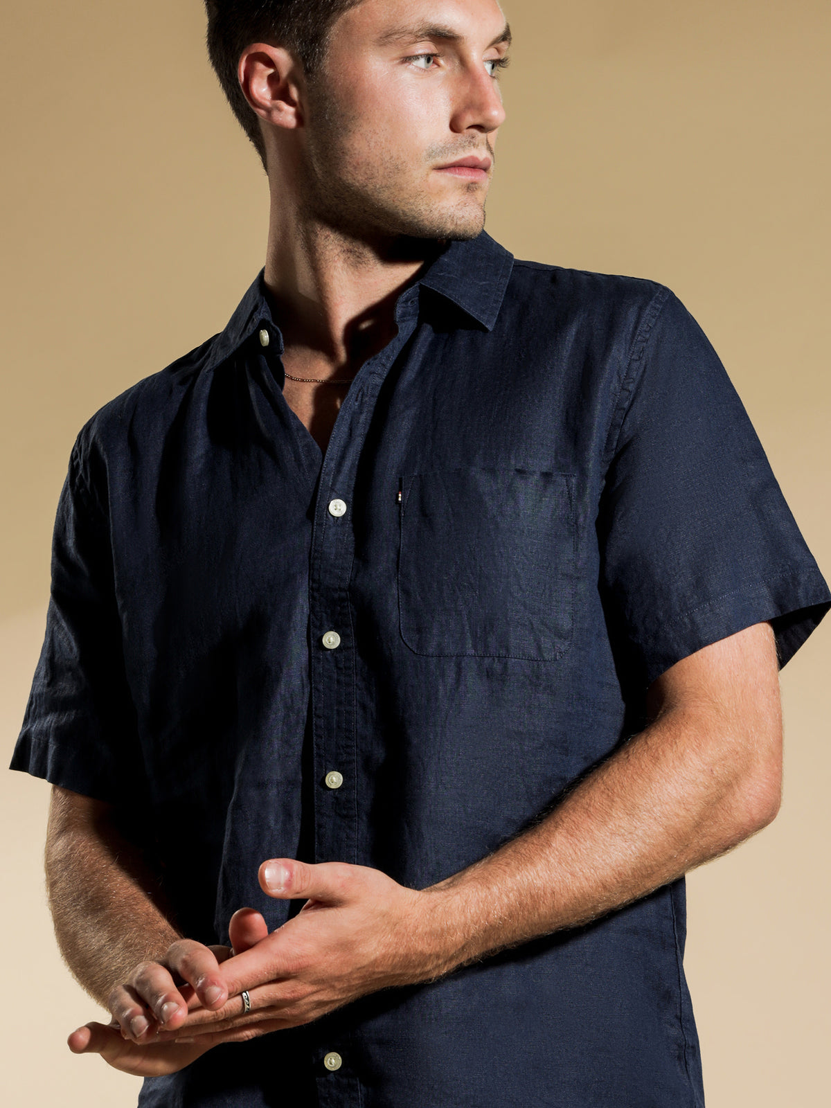 The linen Academy Brand shirt is beautifully light and cool to wear, so versatile - lunch, work or a casual drink on a Sunday afternoon with friends. Will be buying another.