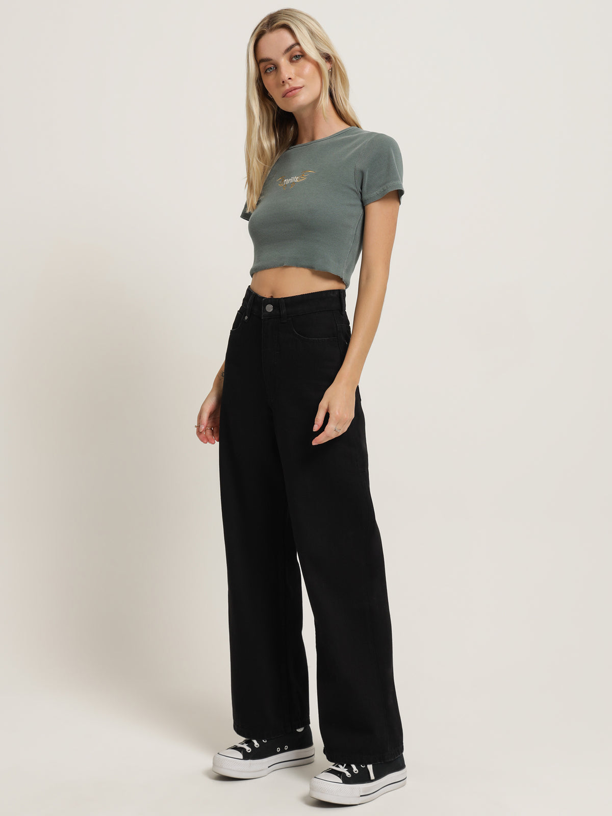 I have a long torso and I love the high waist! It’s the perfect hight for going out tops. Super nice dark black!