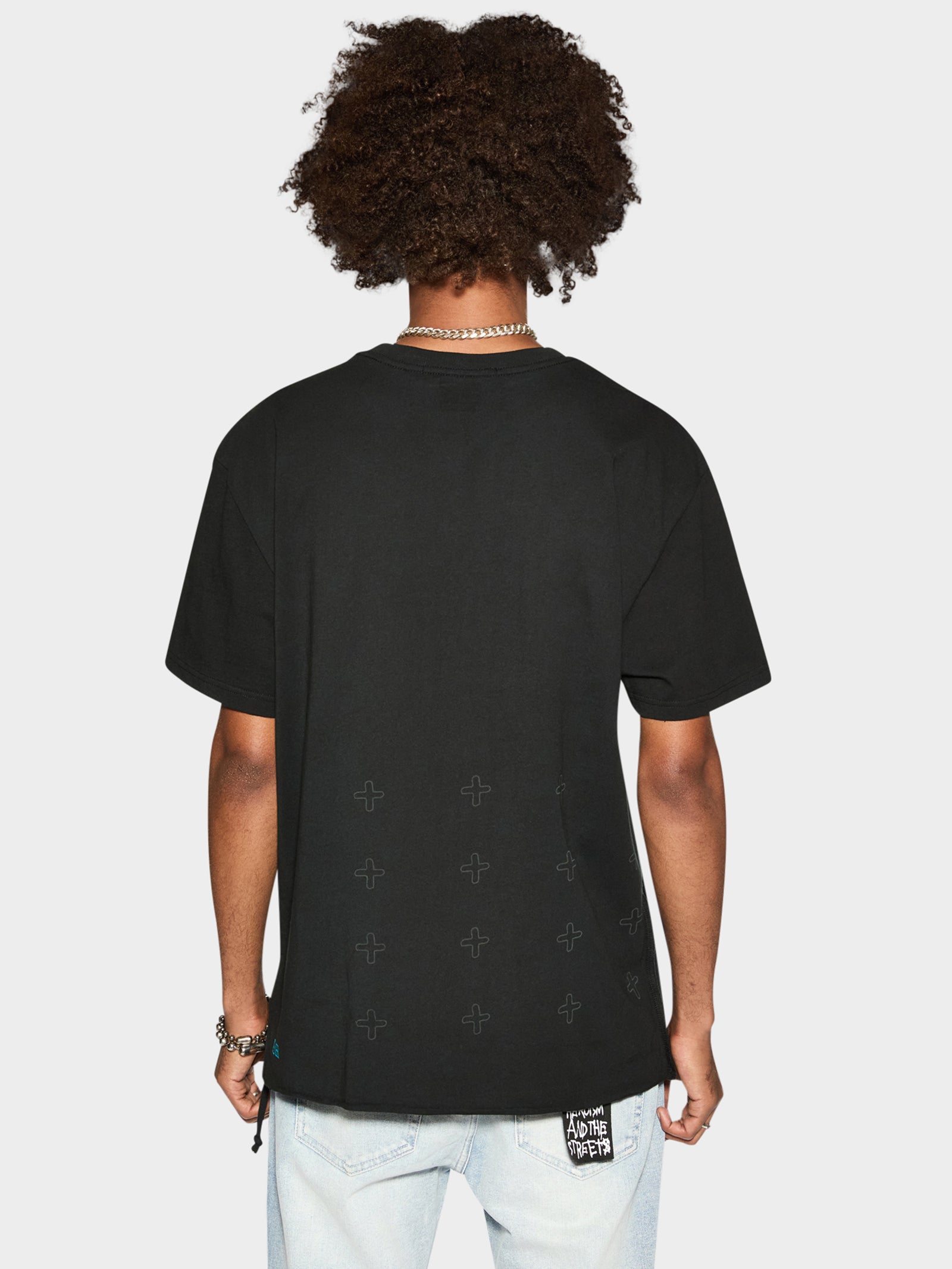 The relaxed loose fit offers a comfortable, laid-back wear complimented by the centre Ksubi graphi. The Ksubi monogram on the back adds a signature touch, completing the look with a subtle nod to the brand's iconic identity. The Burn Biggie Tee seamlessly blends comfort with edgy, street-style aesthetics, famously implemented by Ksubi.