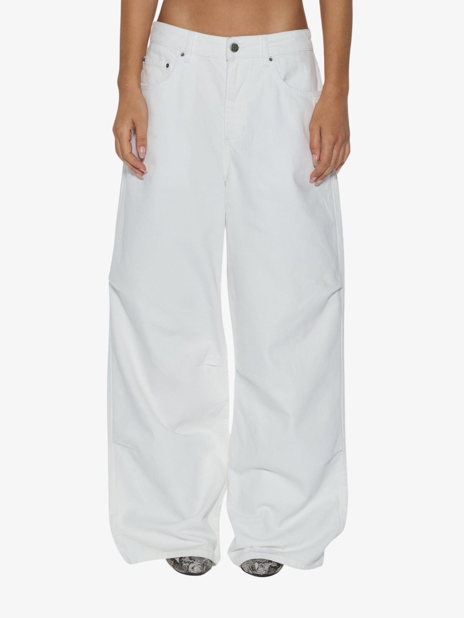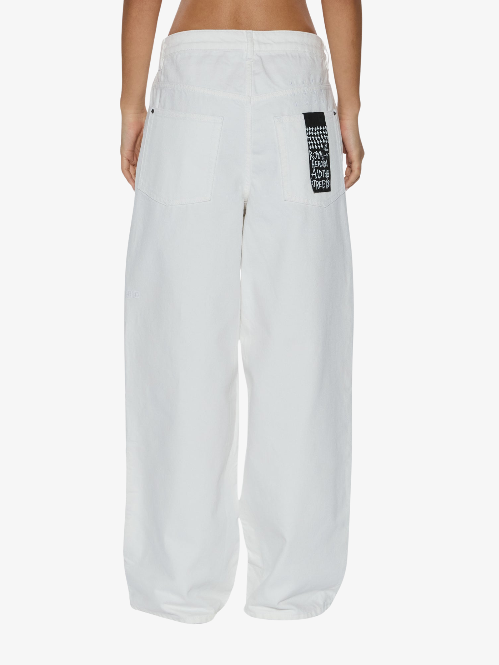 The Ksuper Fly Jean in White by Ksubi is the brand's most exaggerated fit to date. This super low-rise, full-length jean features a distinctive front leg pin tucks and classic five-pocket styling.