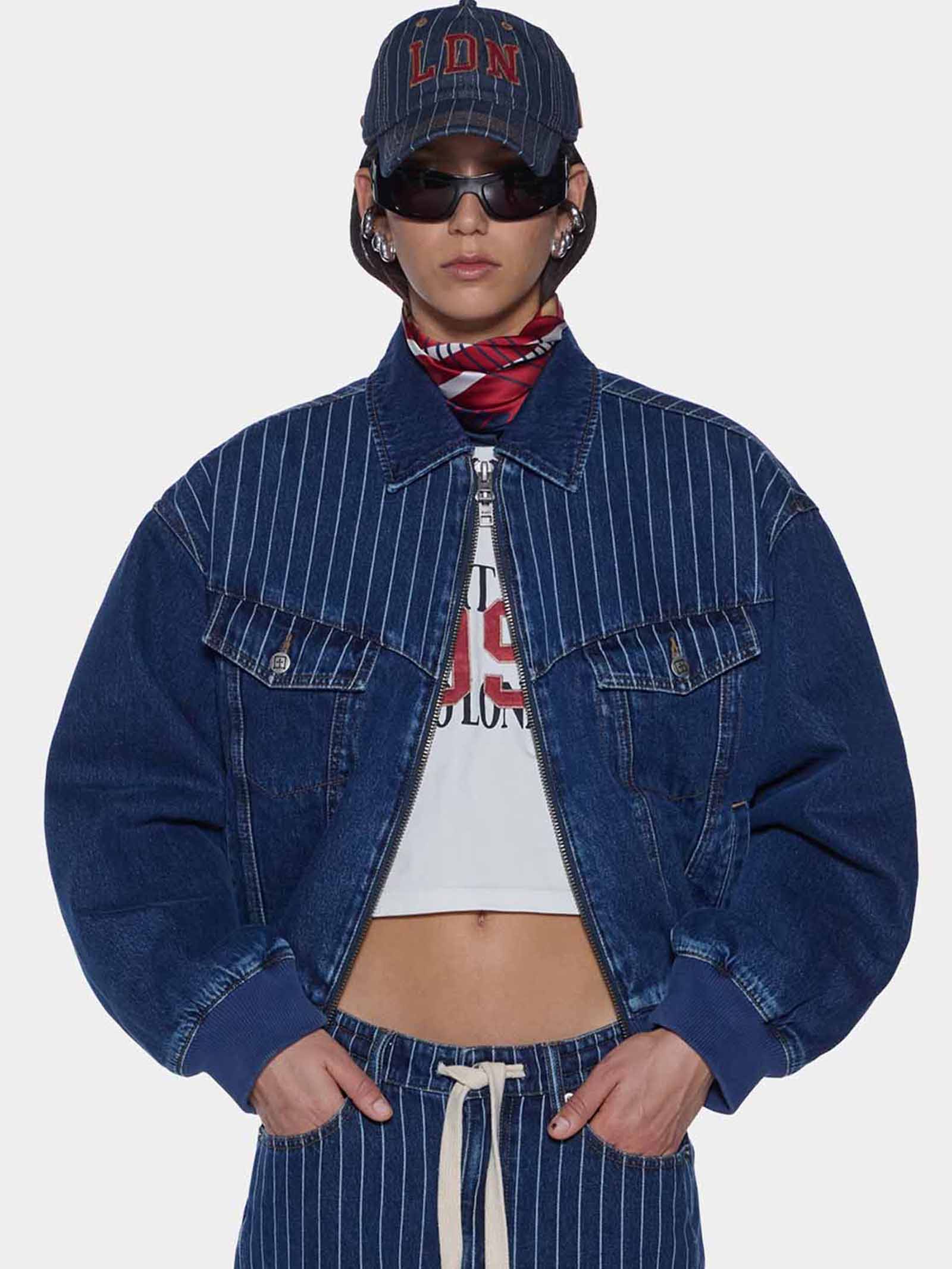 A classic baseball cap reimagined with a vintage edge, LDN Retro Cap by Lissy Roddy x Ksubi brings together heritage sport styling and bold city branding. Designed in a washed denim base with white pinstripes and contrast LDN embroidery, it's finished with tan topstitching for a timeless look.