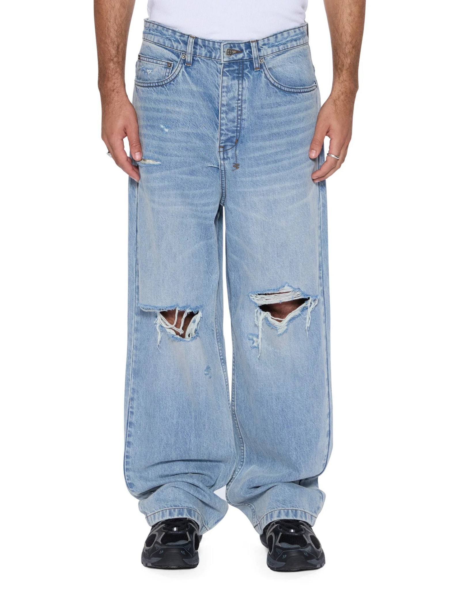 Go bold with the Maxx Striker Jean by Ksubi, a rigid denim jean built for edge and structure. This exaggerated straight leg style features distressed knees, signature embroidery, and a heavy stone wash finish for a lived-in look with attitude.