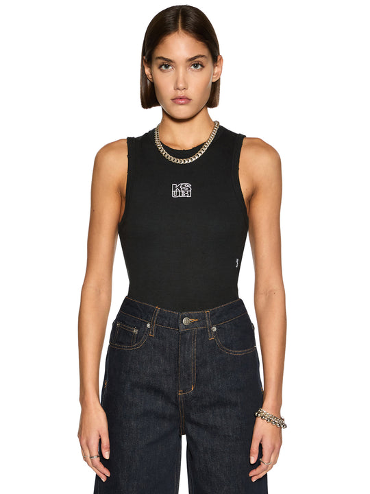 The Ksubi Stacked Syndicate Tank offers a refined yet laid-back vibe, featuring a clean, embroidered logo at the center chest. The ribbed crewneck adds a classic touch, while the soft, stretchy cotton fabric ensures comfort and ease of movement. Perfect for layering or wearing on its own, this tank delivers the ultimate balance of style and comfort, keeping your streetwear wardrobe effortlessly cool.