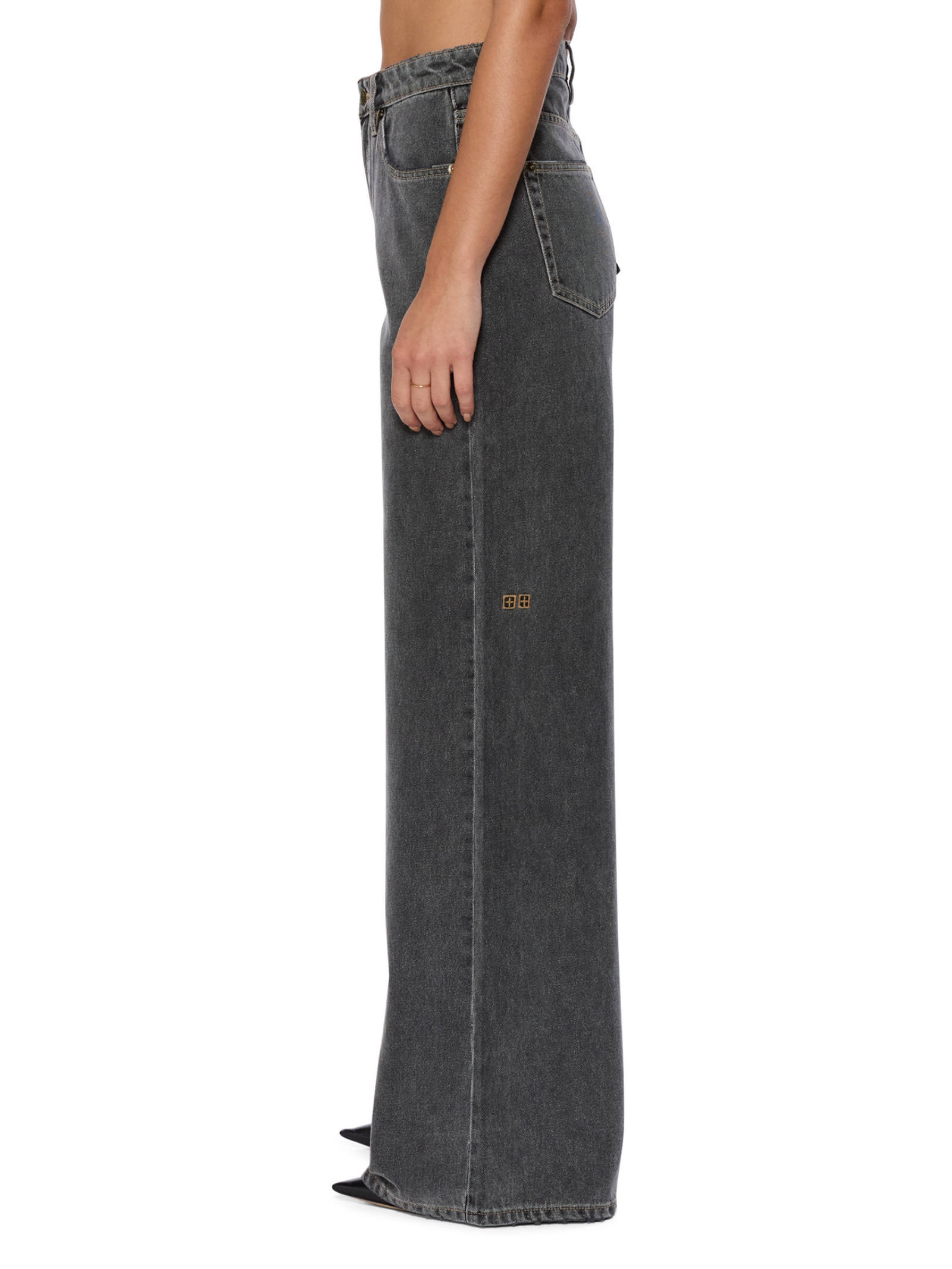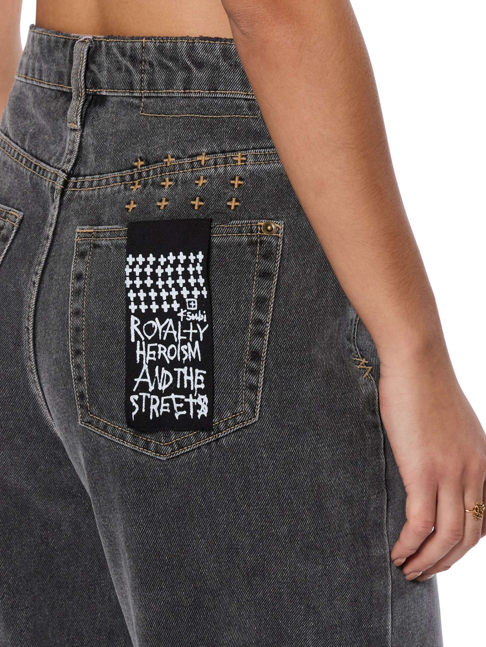 The Ksubi Strider Cinder Pant in Black by Ksubi is designed with a wide-leg silhouette. These pants offer a mid-rise waist, classic five-pocket styling, and signature branding details, including the iconic T-box and 3x4 embroidery.