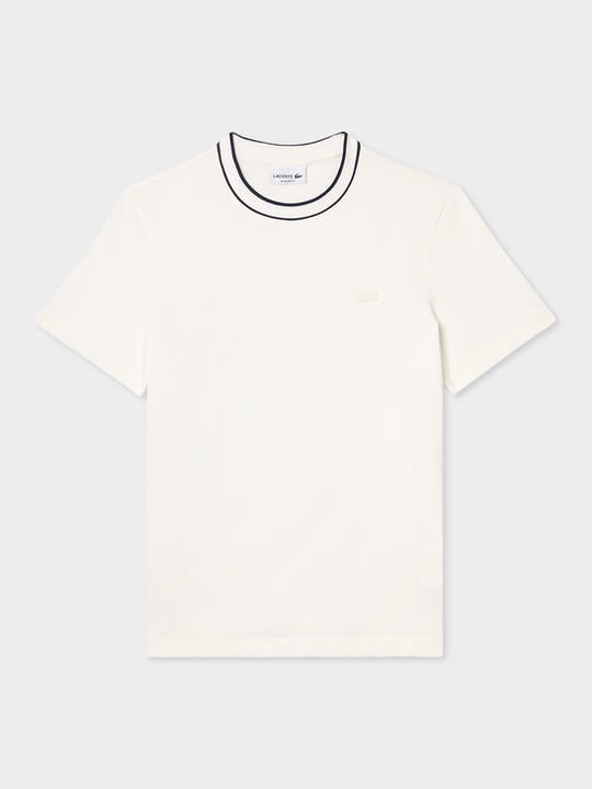 A refined take on a timeless staple, the Essential Stretch Mini Piqué T-Shirt by Lacoste offers a regular, straight cut for effortless wear. Crafted from premium stretch piqué fabric, it delivers both comfort and a polished look. The striped, ribbed collar adds a subtle contrast, while the iconic crocodile logo on the chest cements its signature appeal. A versatile piece that seamlessly blends sport and style.