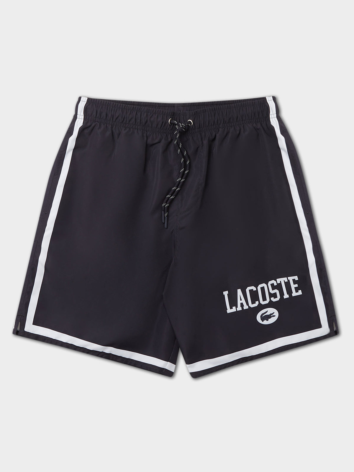 Dive into heritage style with the French Iconic Swim Shorts by Lacoste. Featuring a vintage inspired script and patch logo, these swim shorts showcase a classic white border for an elegant touch. Embracing Lacoste's rich heritage, these shorts offer an iconic look, perfect for beach days and poolside lounging.