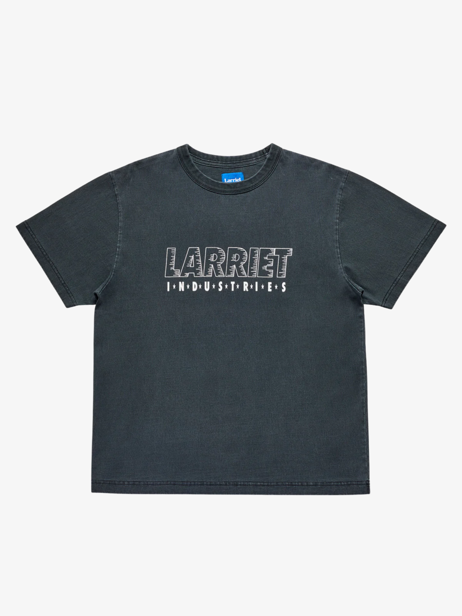 The Industries Tee in Used Black by Larriet is made from soft cotton jersey in a washed black finish. This tee features short sleeves and a classic crew neckline.
