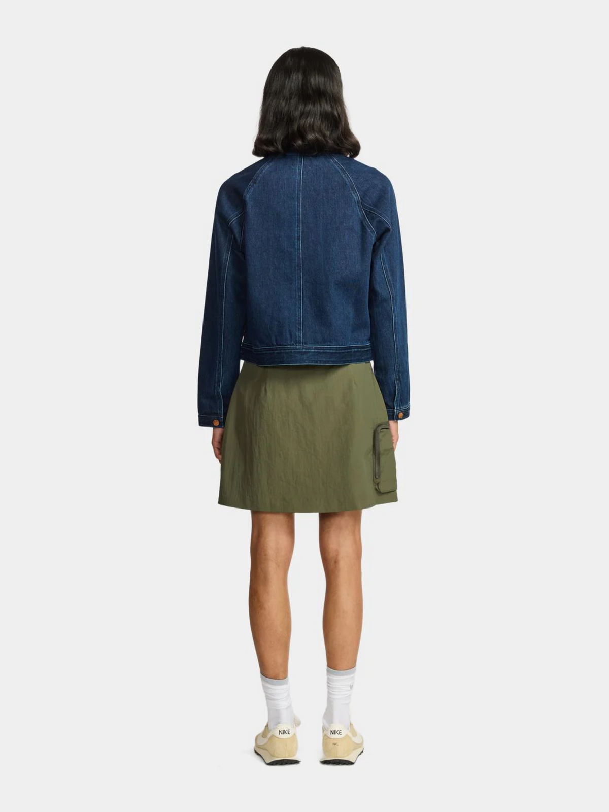 The Work Jacket in Indigo by Larriet is crafted from durable cotton denim with a boxy, slightly oversized fit. This jacket features classic panel construction, contrast stitching, and functional patch pockets for a practical edge.