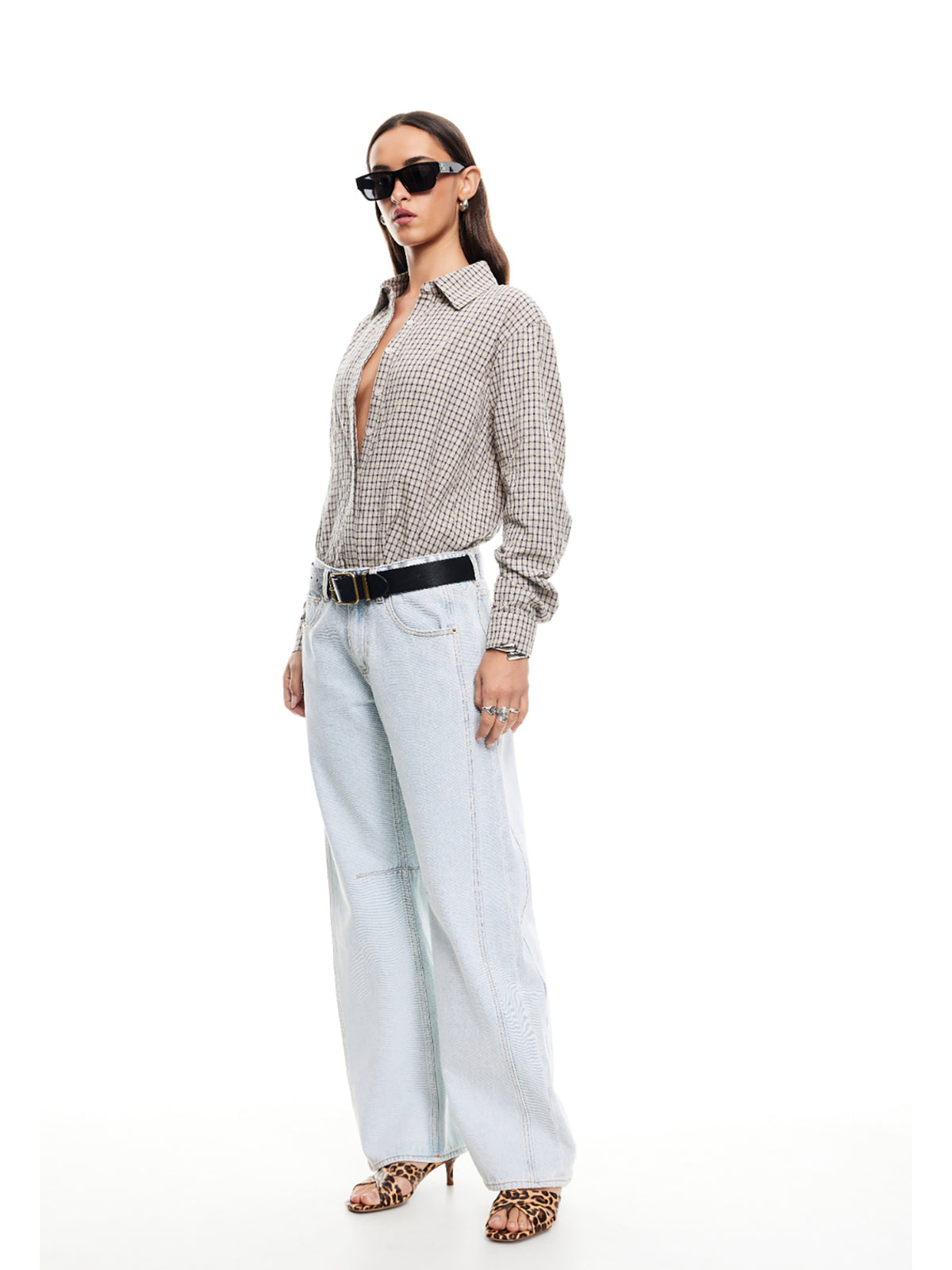 The Nirvana Shirt in Vintage Beige Plaid by Lioness features a boxy, oversized fit and a structured collar. This shirt is crafted from a soft, mid-weight woven fabric and designed with a neutral plaid pattern.