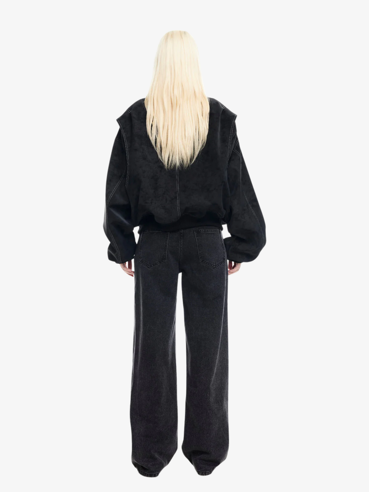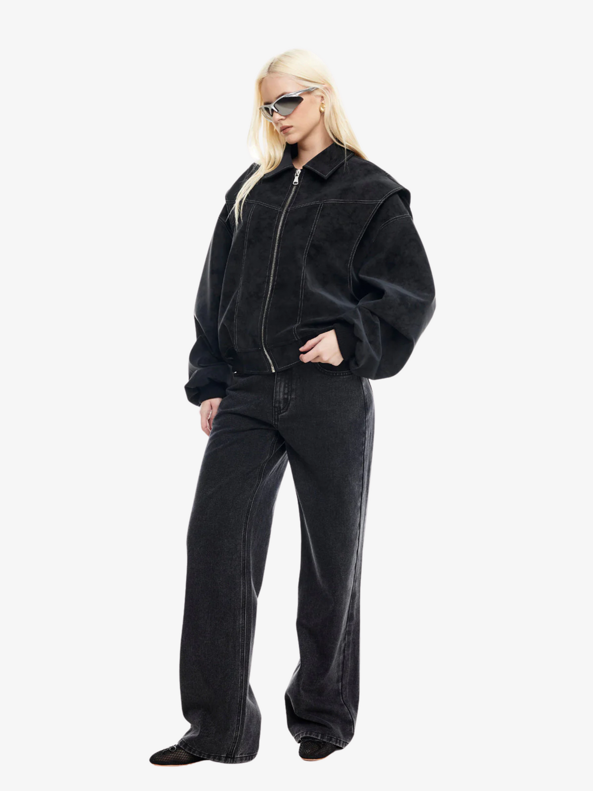 The Vista Bomber in Onyx by Lioness is designed with contrast stitching. This Bomber features a zip front, elasticated cuffs and hem.