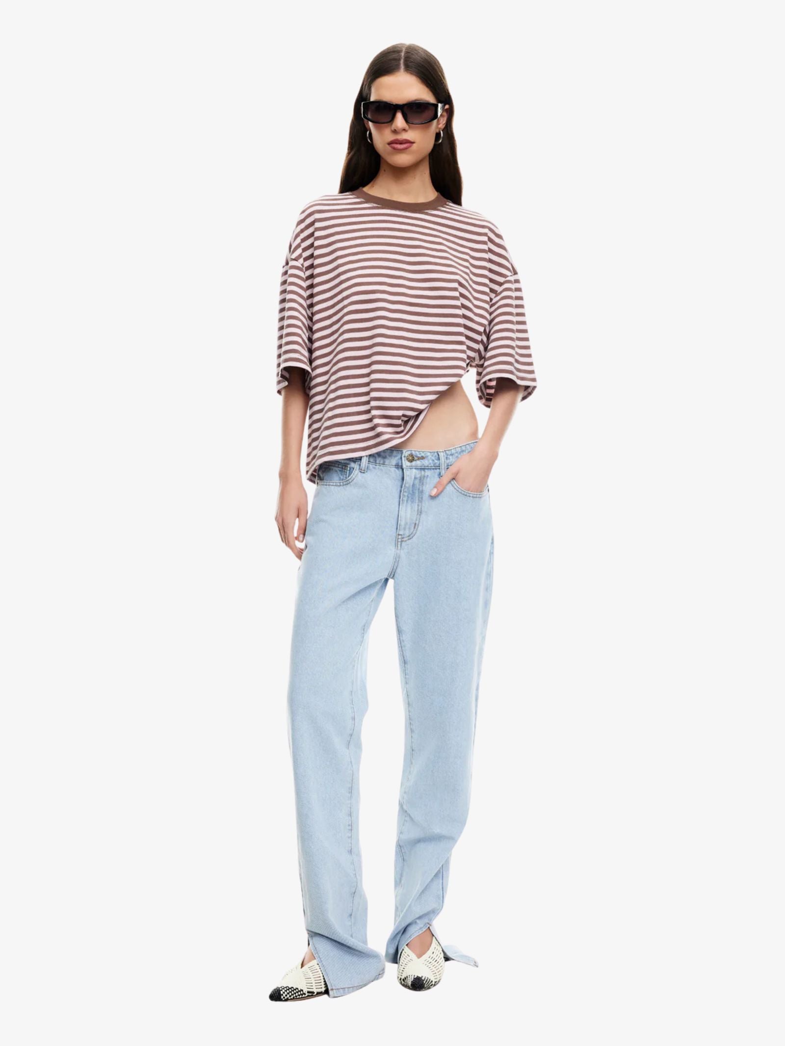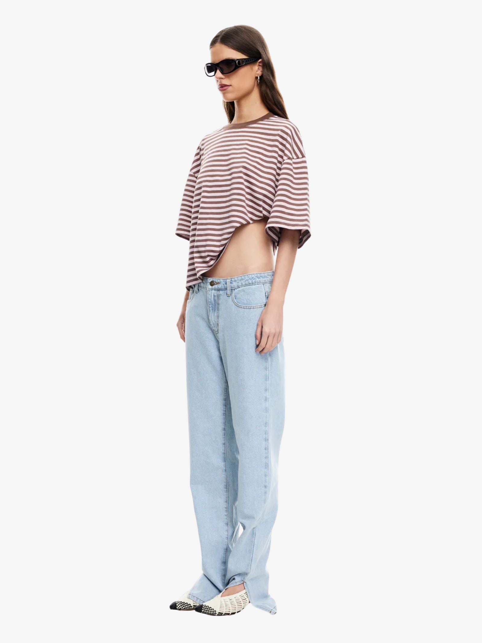 Upgrade your denim collection with the Westwood Jean in light denim. This stylish pair features a low-rise design and straight leg with unique side tucks for a flattering silhouette. The contrast stitching adds a bold touch, while the slight wash variance means each pair has a unique look. Crafted from 100% cotton, these jeans are durable and comfortable. They run true to size, making them a reliable wardrobe staple.