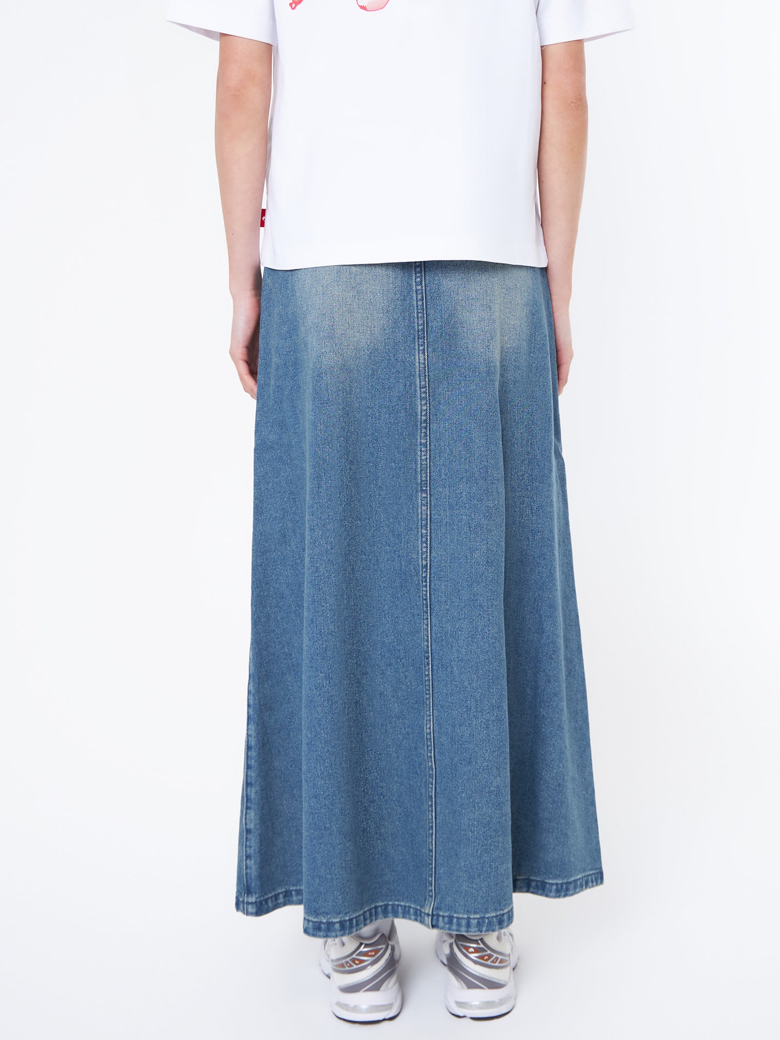 Constructed with a high waisted fit and a flowy design, this maxi skirt adorns an elegant wear and is equipped with an elasticised waistband for a slim fit over the hips.