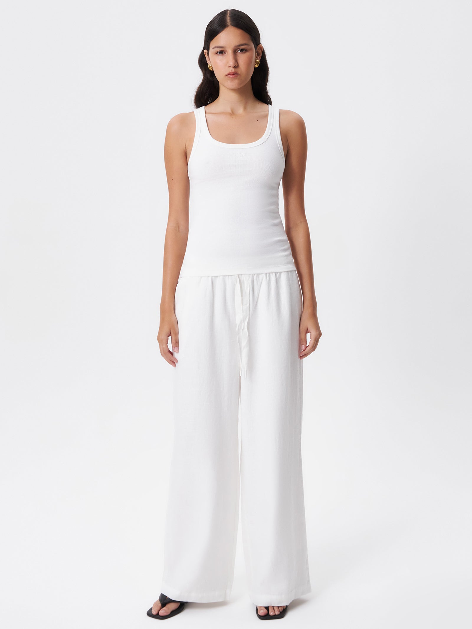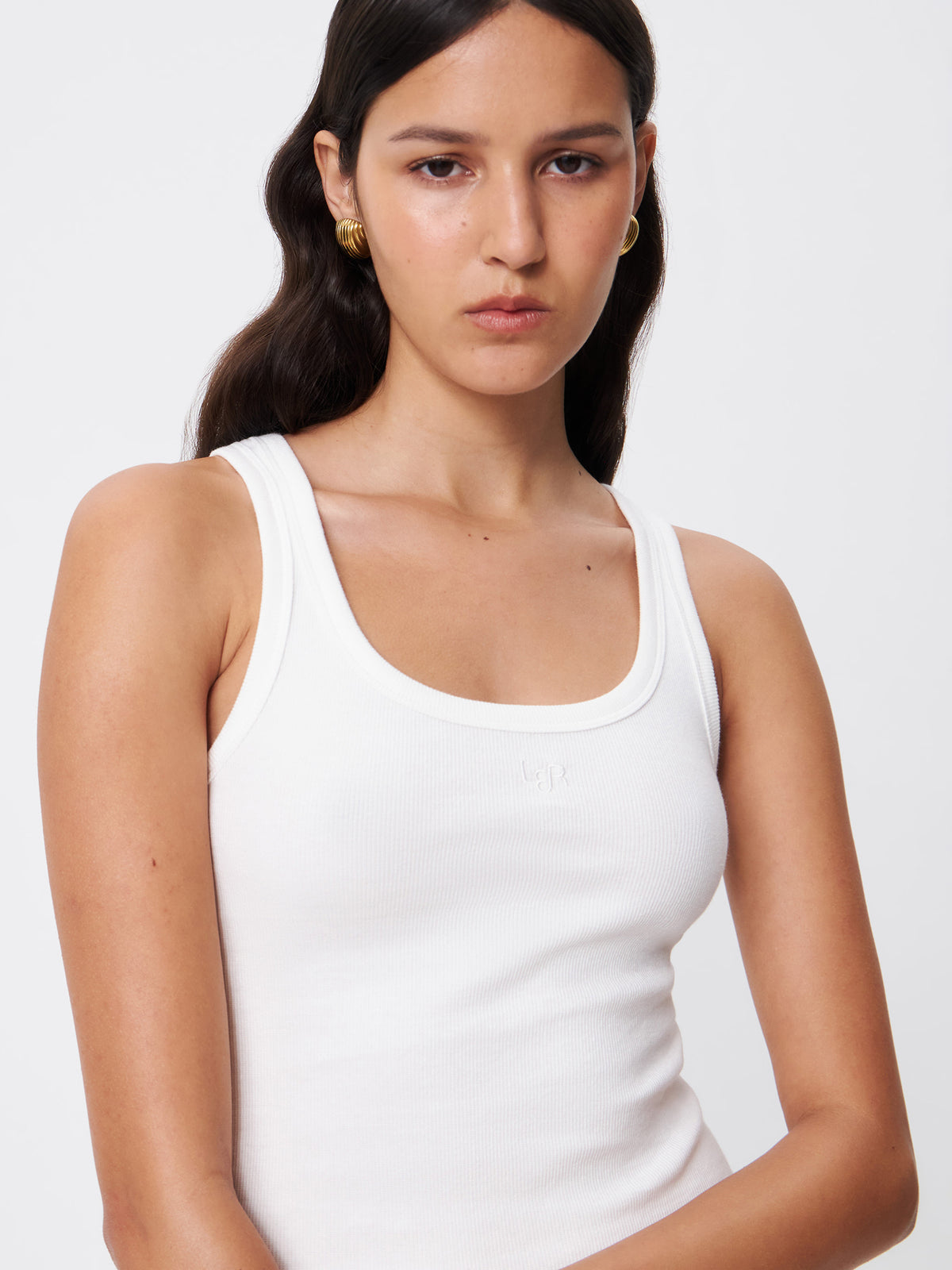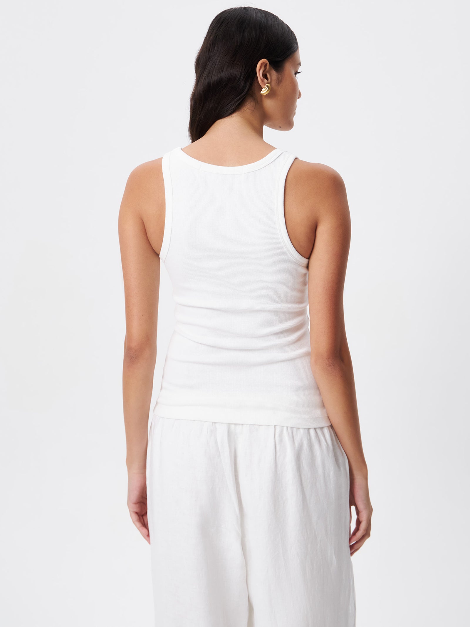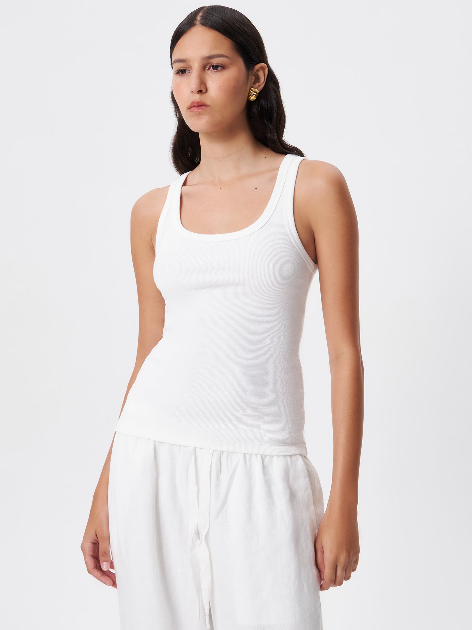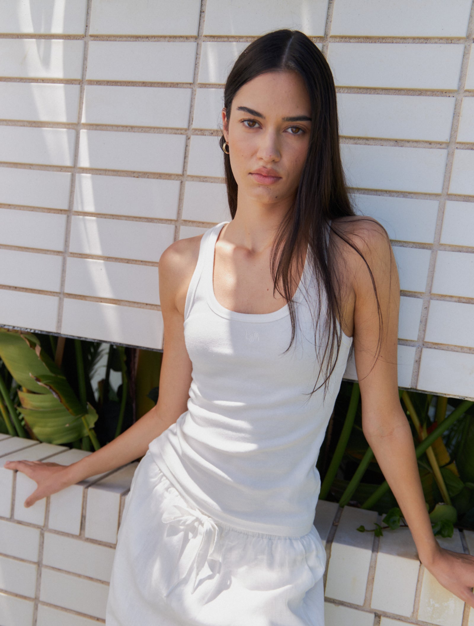 The Rib Tank in Off White by Lulu & Rose is made from a soft, stretchy ribbed fabric. This tank provides a comfortable, figure-flattering fit.
