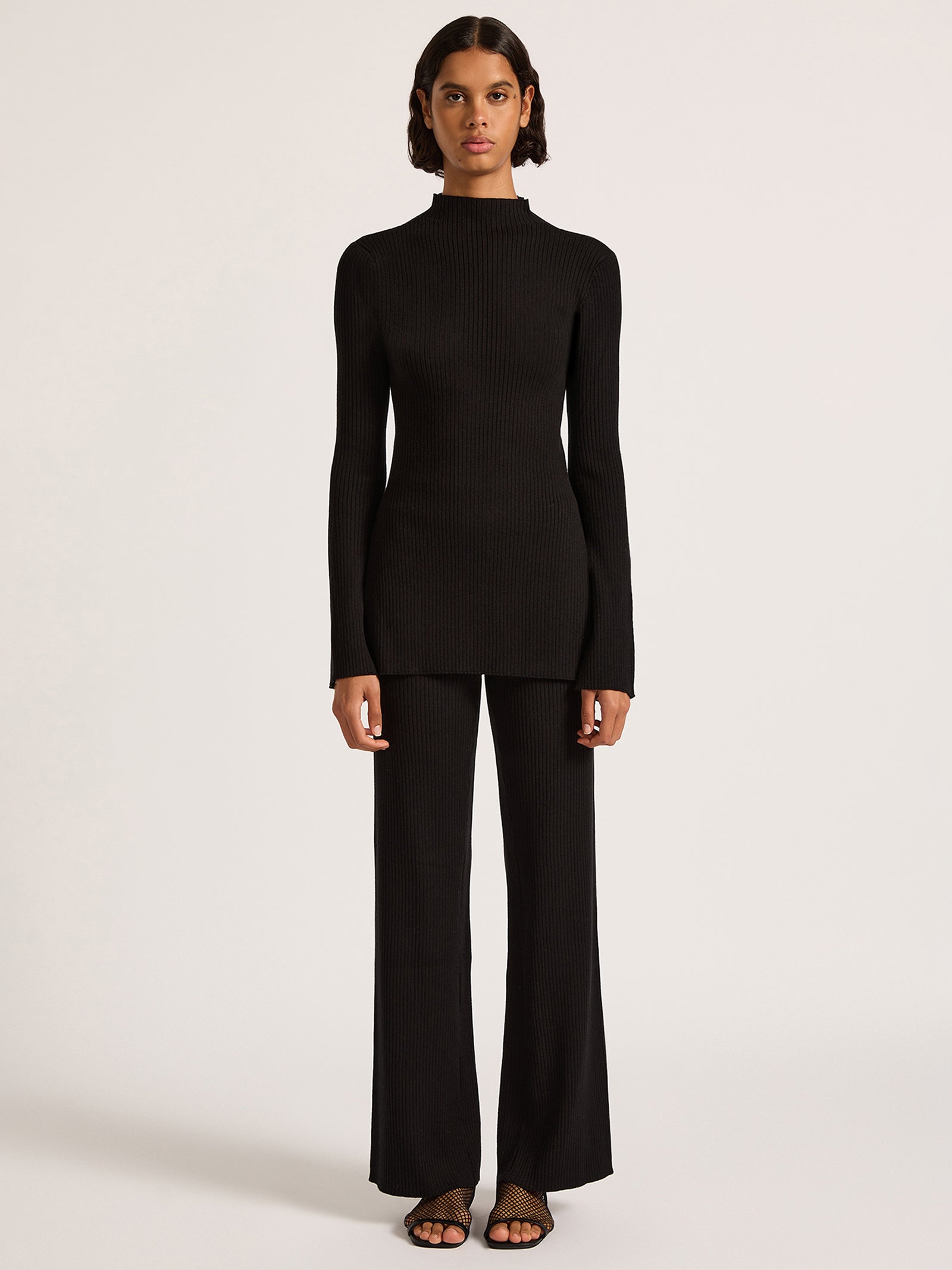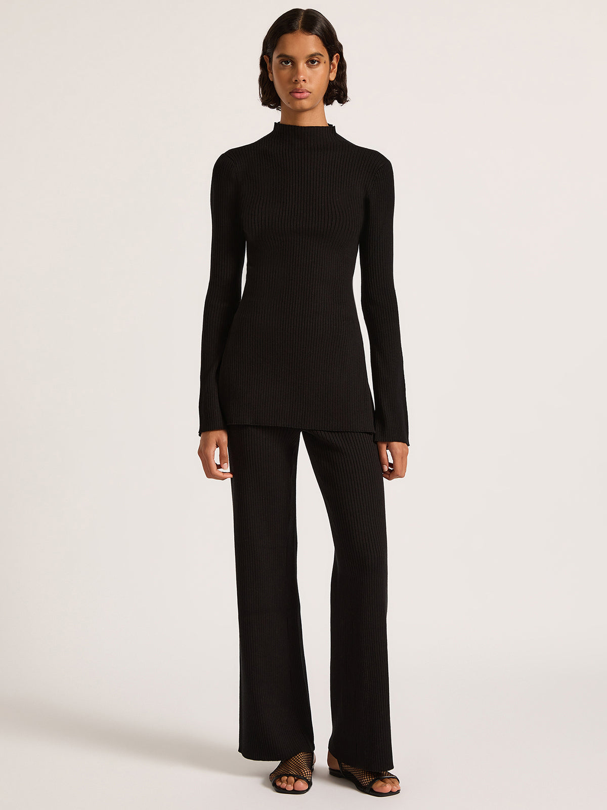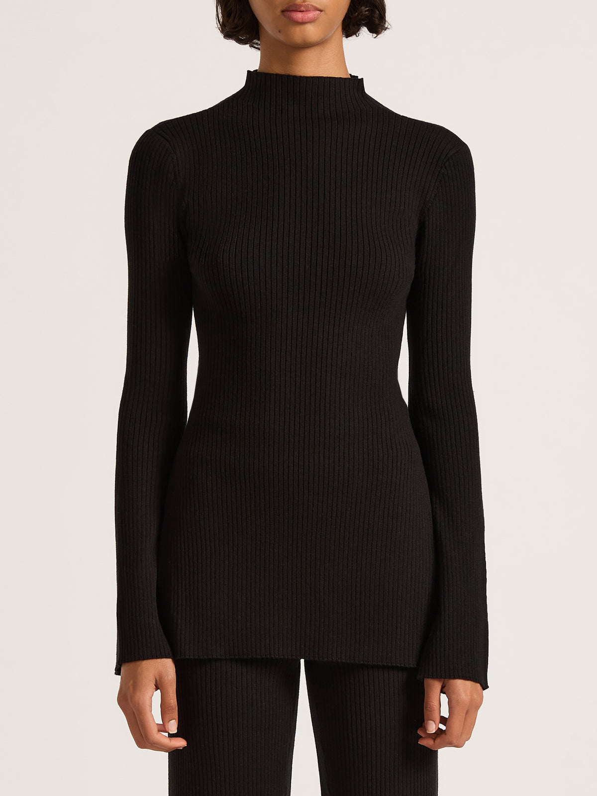 The Malo Knit Tunic features a long sleeve tunic top with a wide ribbed knit. This knit offers a moderate stretch for comfort. The turtleneck provides additional warmth, while the flared cuffs extend past the wrists for a stylish touch. The longline fit of the tunic offers a flattering silhouette. Crafted from ribbed knit material (78% Viscose, 20% Nylon, 2% Elastane), this tunic is both comfortable and durable.