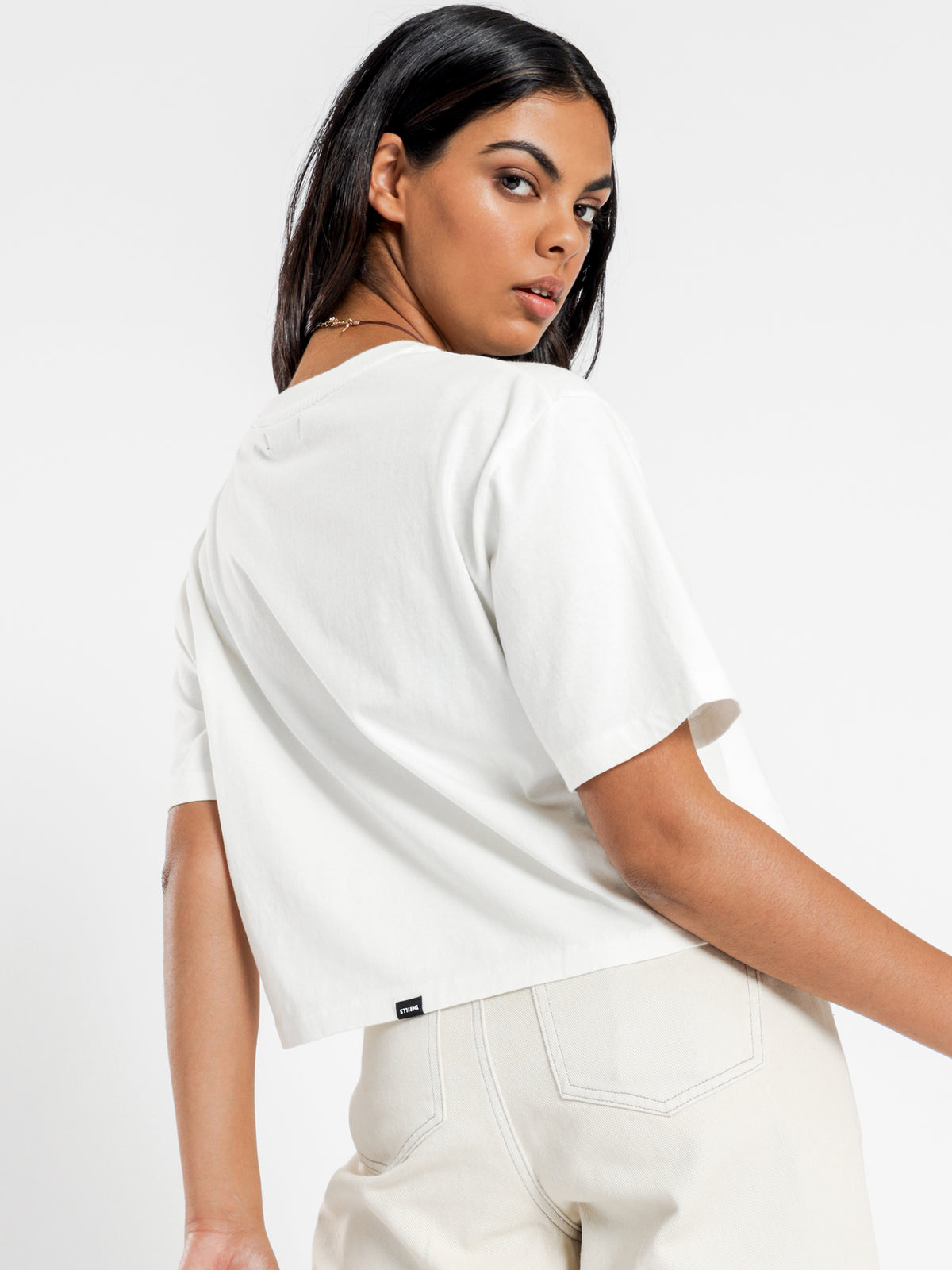 Sizing: This garment is a cropped fit, and our model is wearing a size 6