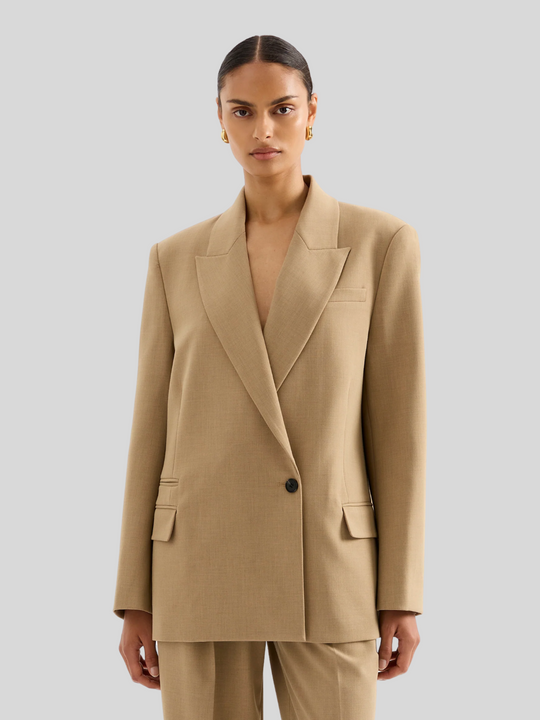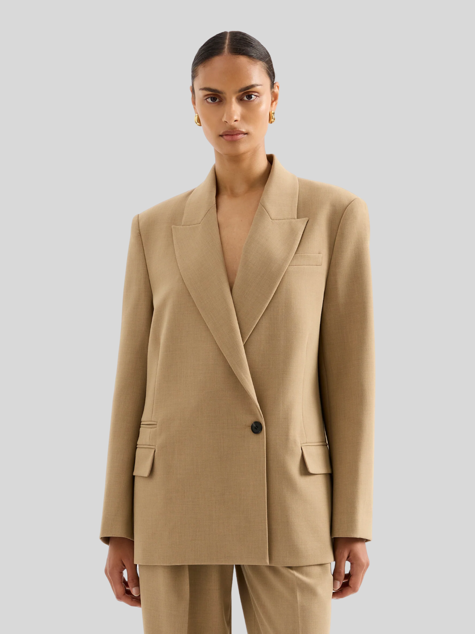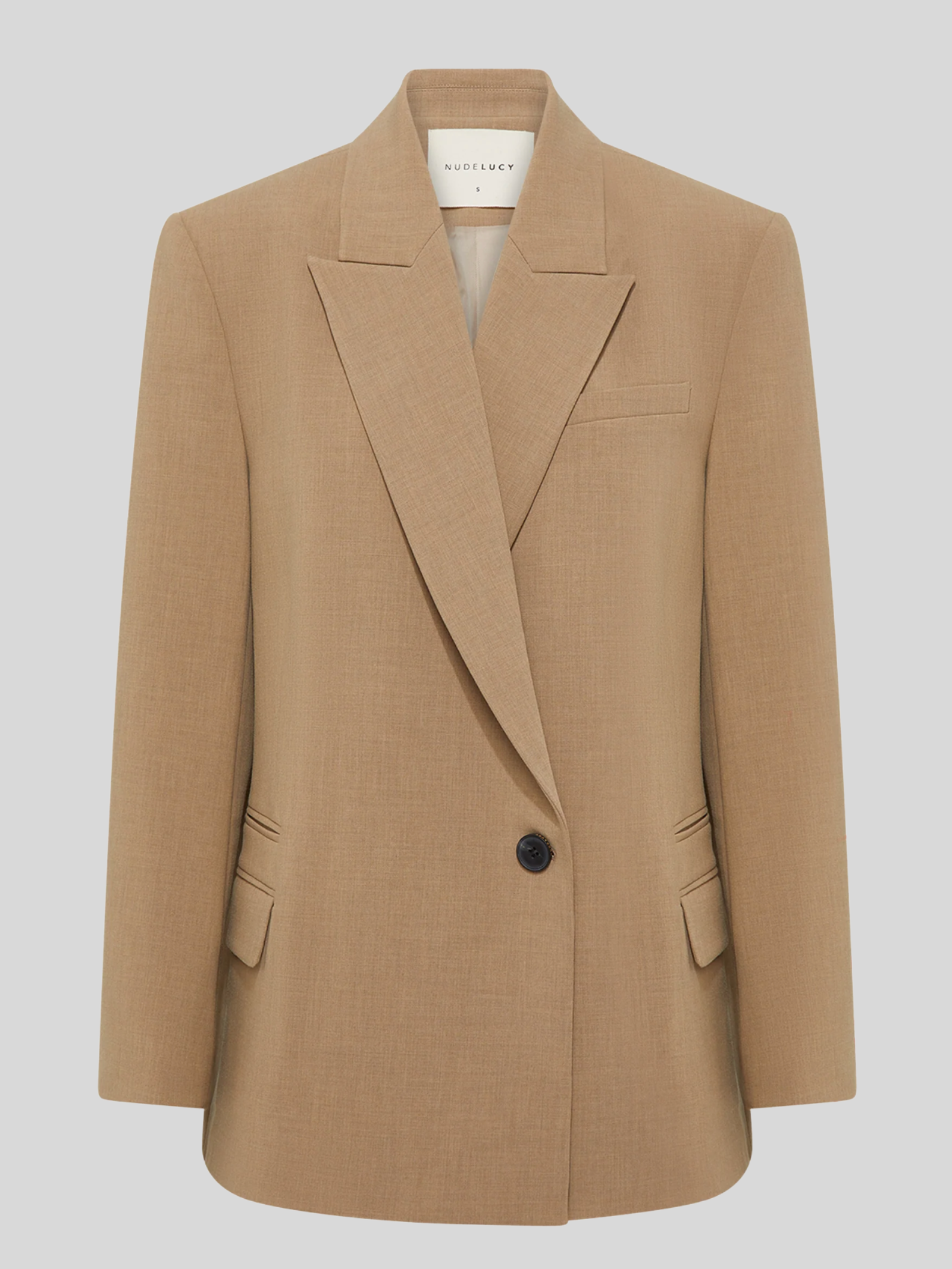 Nude Lucy is a refined, double-breasted blazer that is crafted from a premium stretch tailoring fabrication. This versatile blazer is ideal for both professional settings and casual outings.