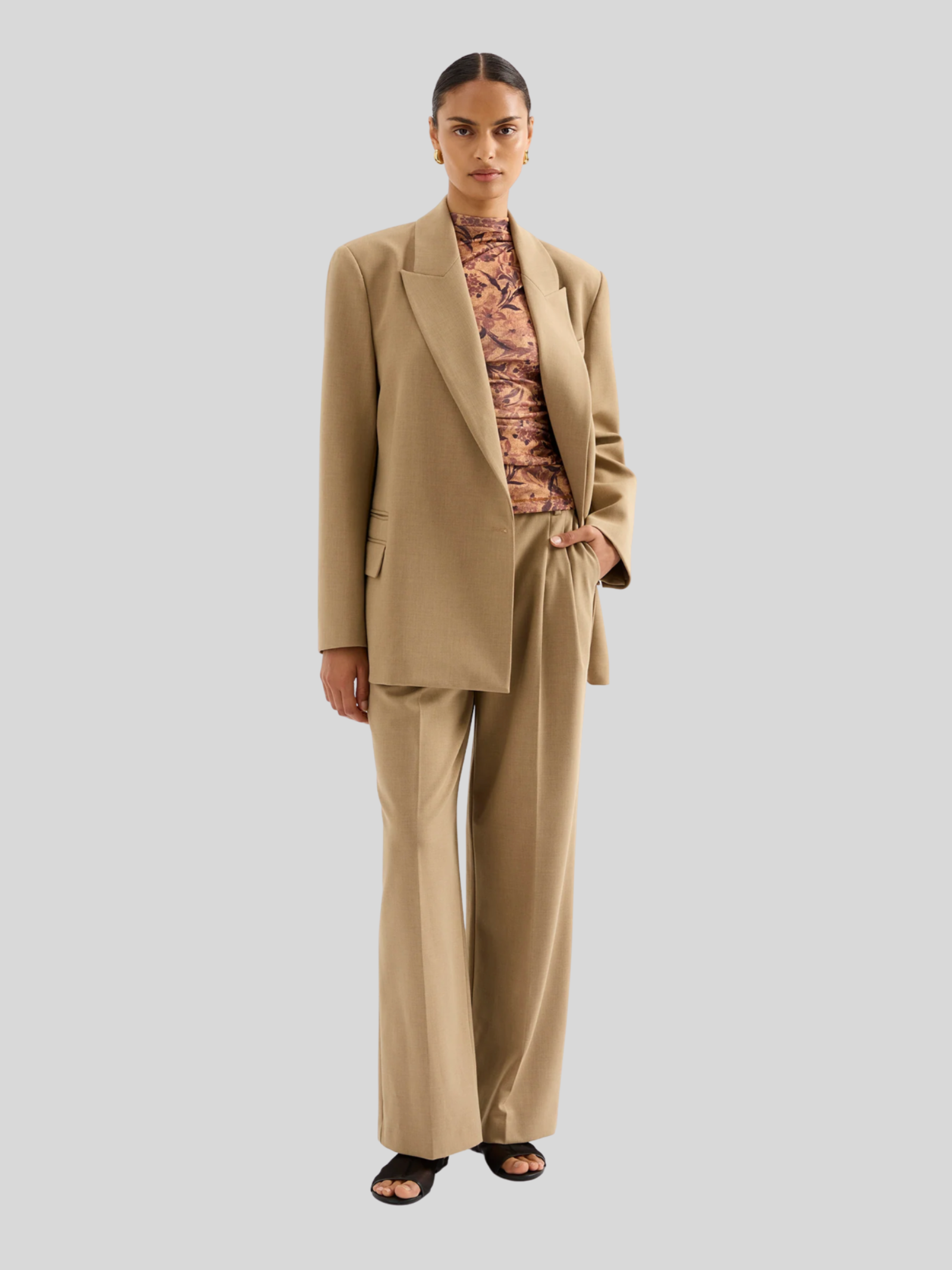 The Mercer Tailored Pants in Caramel by Nude Lucy is tailored with a high rise and wide leg. It features include front pleats at waist, concealed trouser hook closure and Nude Lucy branded internal waist banding.