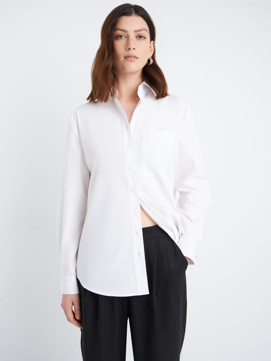 Designed with a slightly loose fit, this shirt boasts a pointed collar, a practical patch pocket on the left chest, and a chic curved hemline with a refined button placket. Crafted from pure 100% natural cotton, this shirt embodies quiet luxury and unmatched comfort. Its breathable, high-quality fabric ensures you stay comfortable while looking effortlessly stylish.