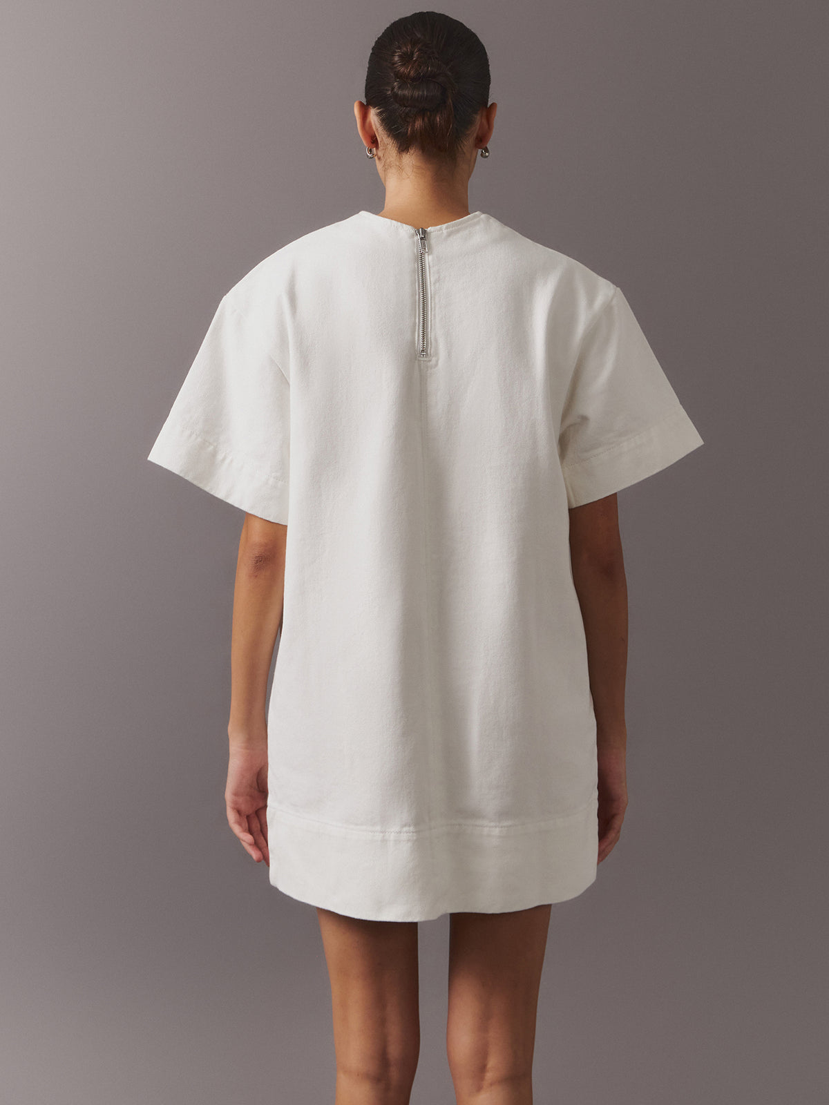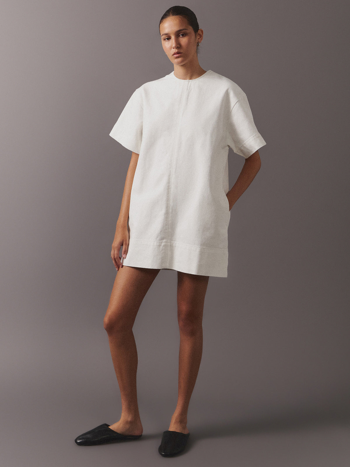 Make a statement with the Relaxed Denim Dress by MSE. Designed with a structured silhouette and a boxy fit, this short-sleeve dress blends modern edge with effortless style. Its clean lines and relaxed shape make it a versatile piece, perfect for dressing up or down.