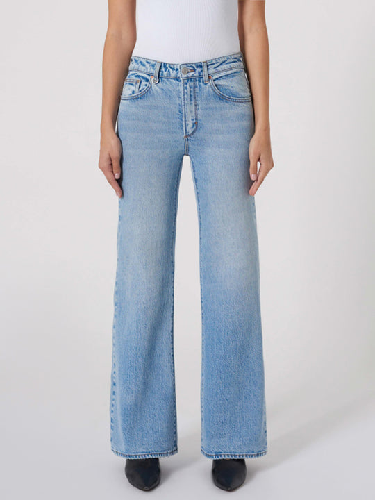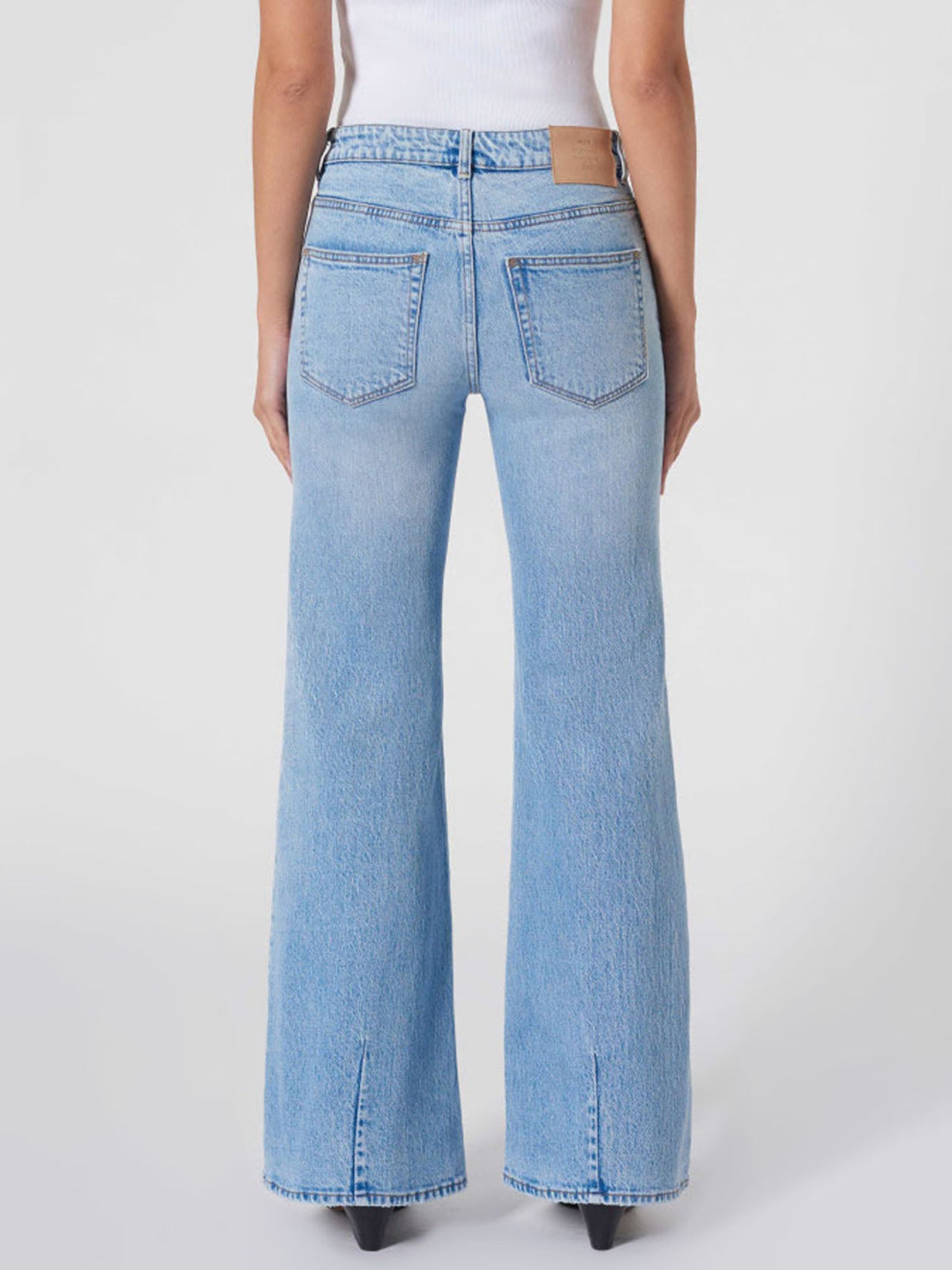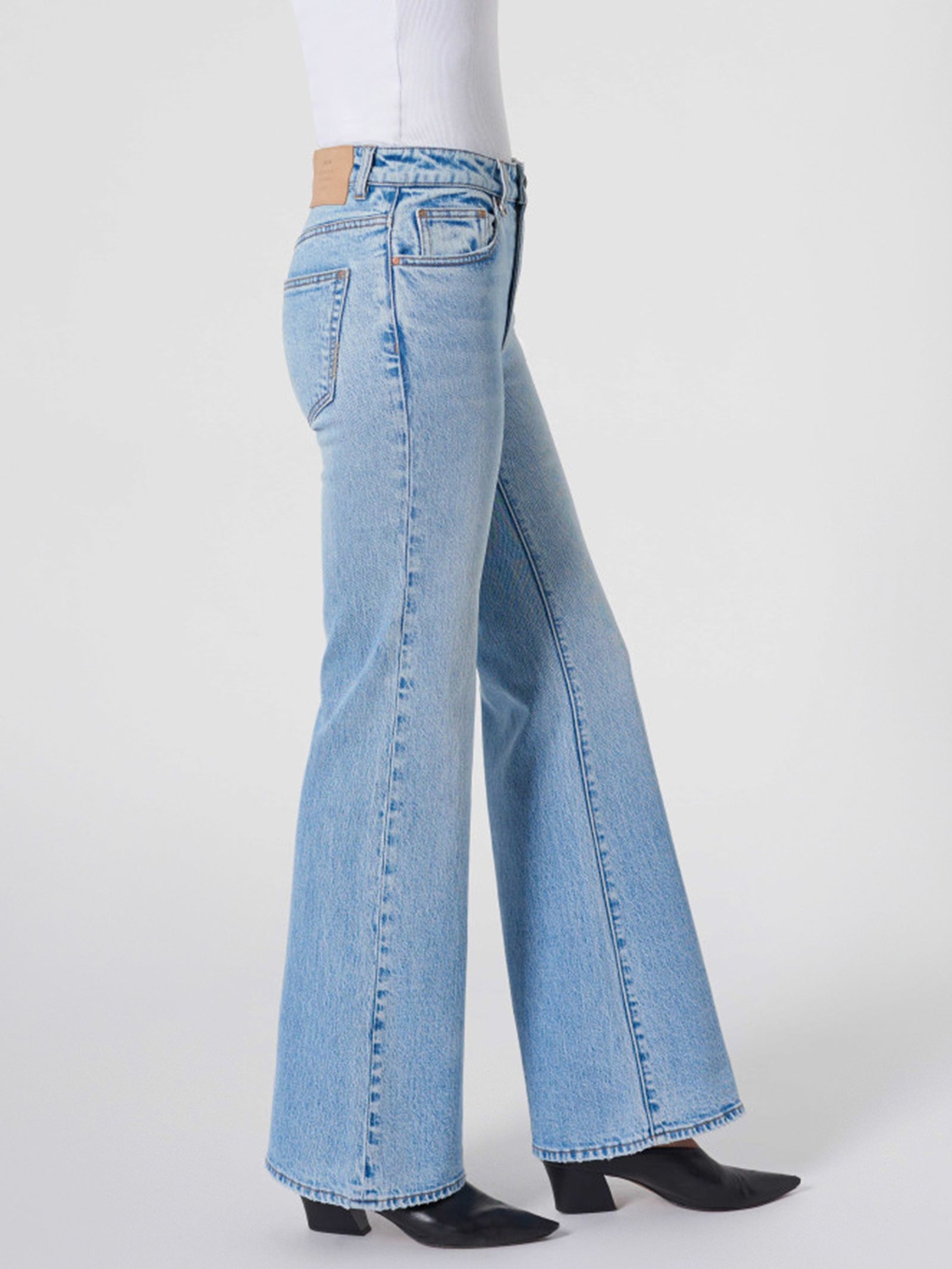 The Eva Wide Gala jeans are crafted from organic cotton in a light vintage indigo wash. These jeans offer a timeless appeal with a modern twist. The mid-rise fit ensures a flattering silhouette, perfect for everyday or to go for slightly more sophisticated look. Embrace the versatility of these jeans, whether paired with sneakers or heels.