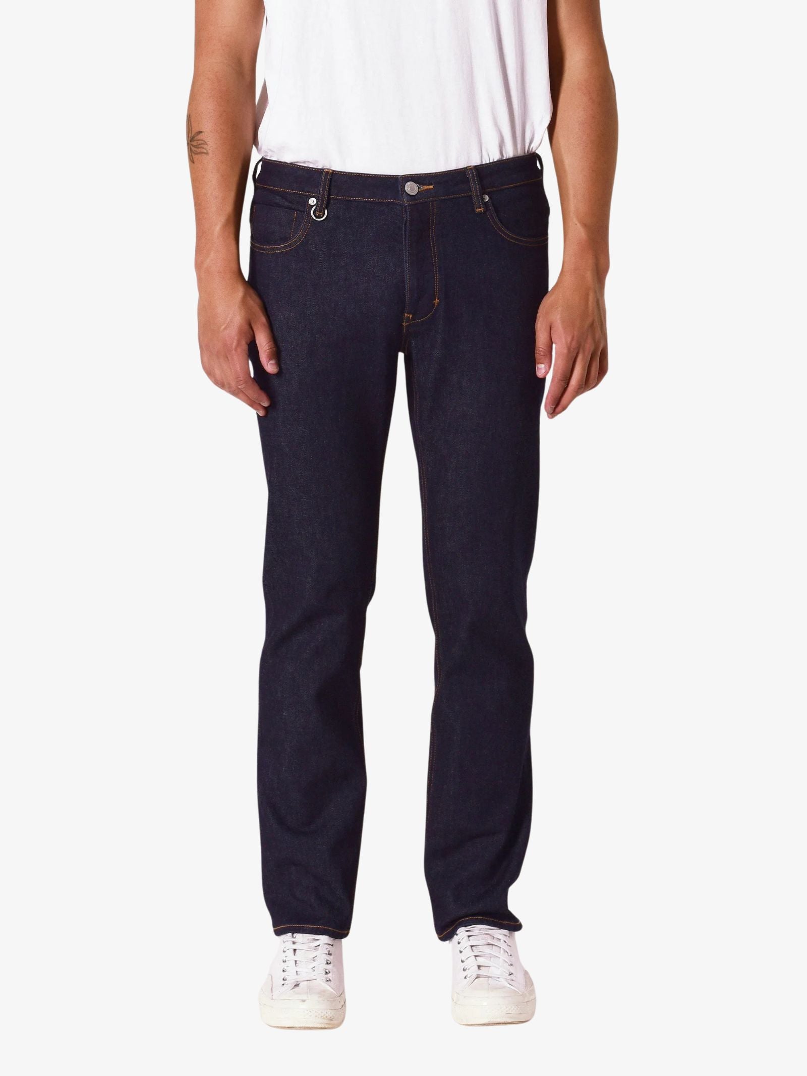 The Lou Straight Crudo Jeans by Neuw is designed with the same comfortable waist and top-block fit as the Lou Slim, updated with a straight leg from thigh to hem for a more relaxed silhouette. Finished with classic five-pocket styling, a button fly, and Neuw’s signature repair stitch and fob ring.