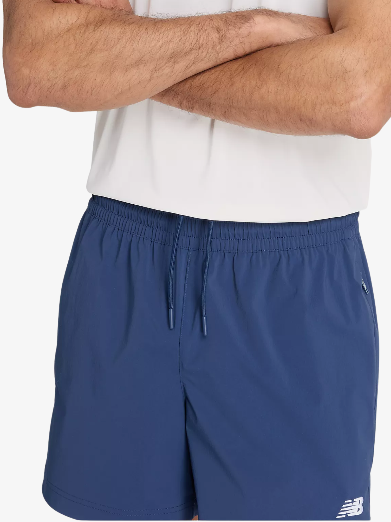 The Athletics Stretch Woven 5" Shorts in NB Navy by New Balance is designed with a 5-inch inseam. This short features a lightweight stretch-woven fabric and finished with subtle New Balance branding.
