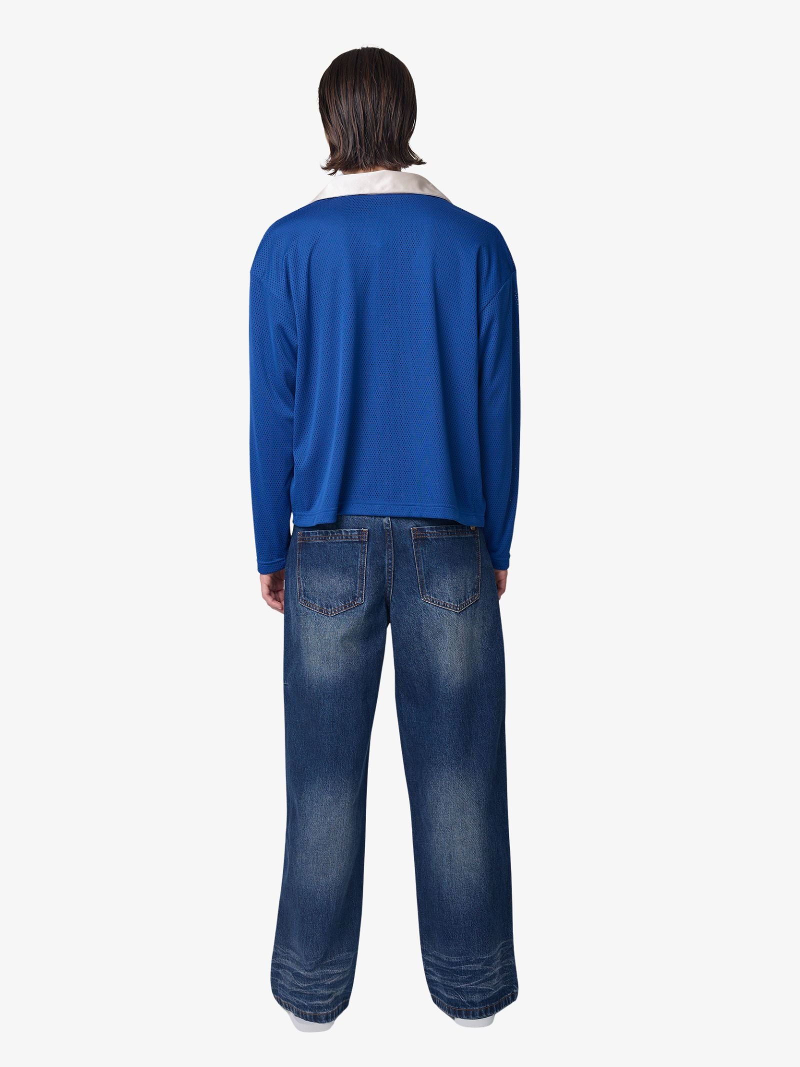 This Mesh Jersey from New Balance is crafted from double-layer recycled polyester mesh for a lightweight feel. It features long sleeves, a contrast tricot collar, and a sportswear-inspired design with an oversized fit.