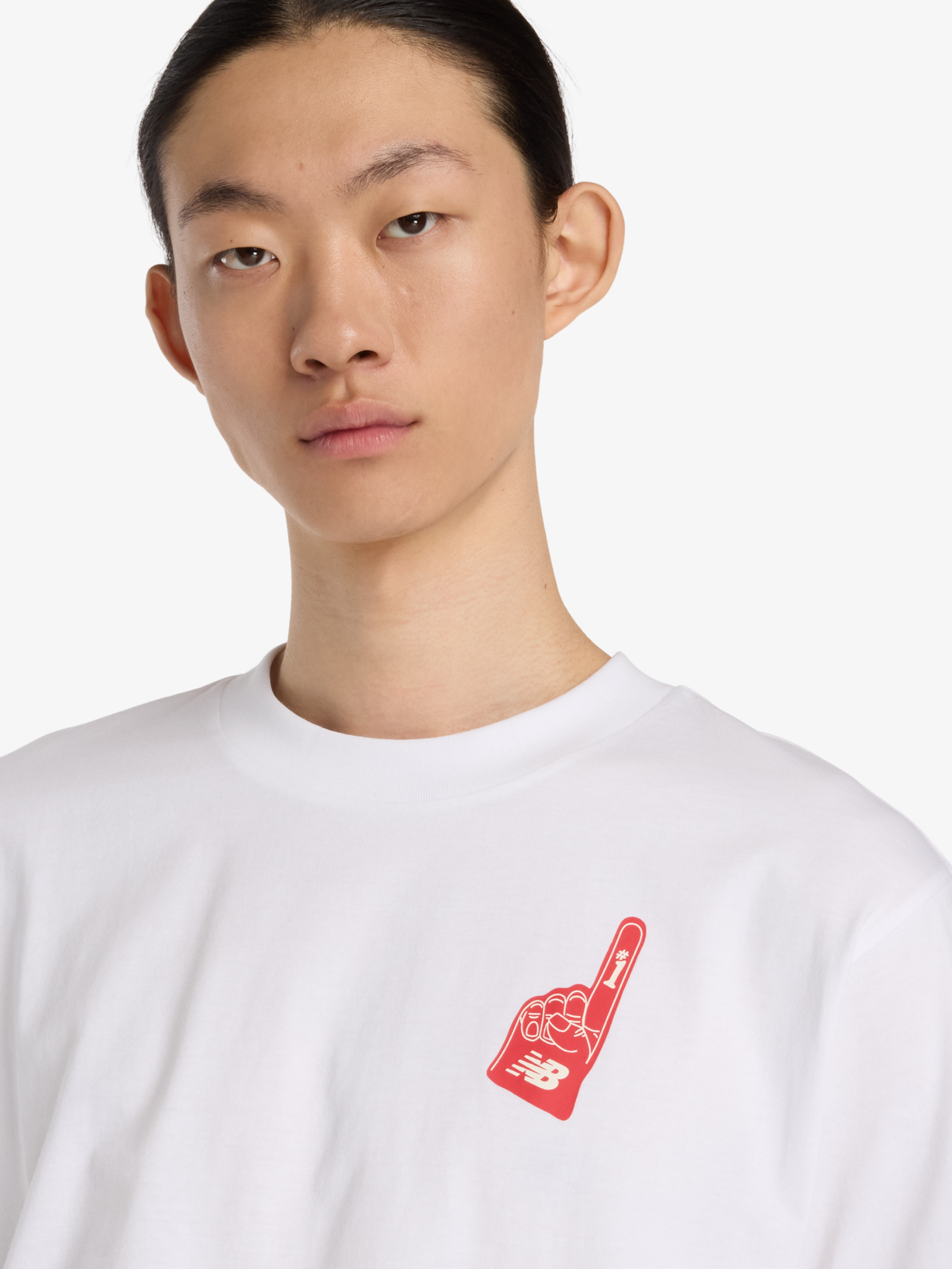 The Stadium T-Shirt in White by New Balance is made from soft, breathable cotton. This classic crewneck tee features a relaxed fit, short sleeves and standout stadium-inspired print across the chest.