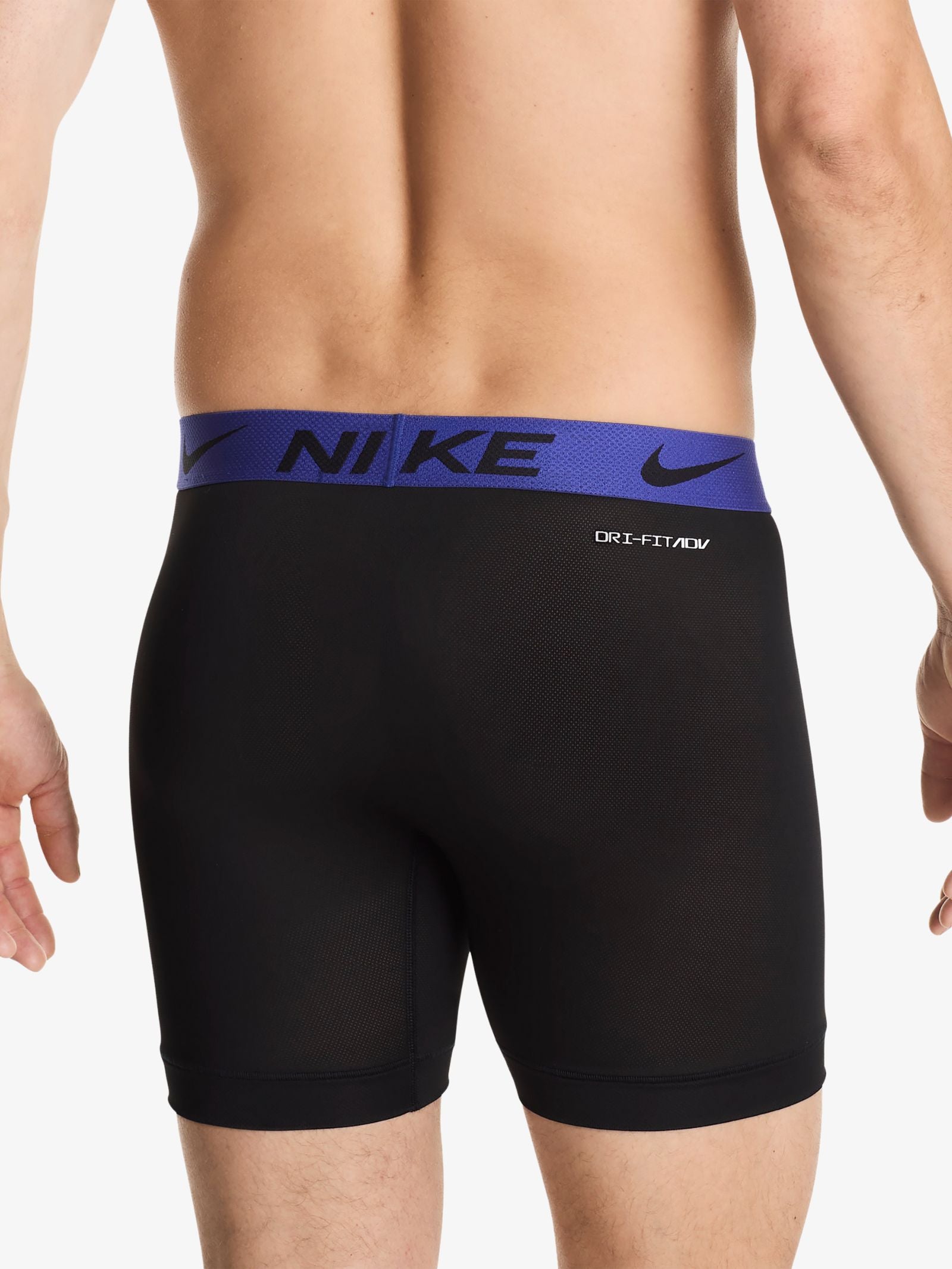 The Men's Underwear ADV Micro Boxer Brief (3 Pack) by Nike Underwear are advanced base-layers engineered with specialized mesh panels for maximum airflow during high-intensity movement. This set is visually characterized by a sleek black body and bold, high-contrast elastic waistbands in blue, yellow, and green, featuring repeated Nike branding and the signature Swoosh.