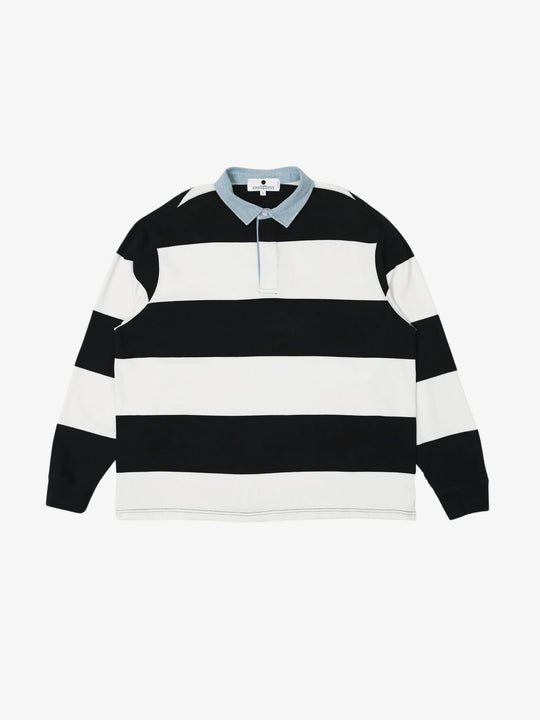 The Beachin Polo by Noon Goons is made from durable cotton yarn dye stripe fabric and designed with a straight, relaxed fit. This long-sleeve shirt features a standout contrast denim collar for a cool twist on the classic style and has been enzyme washed for a soft, broken-in feel.