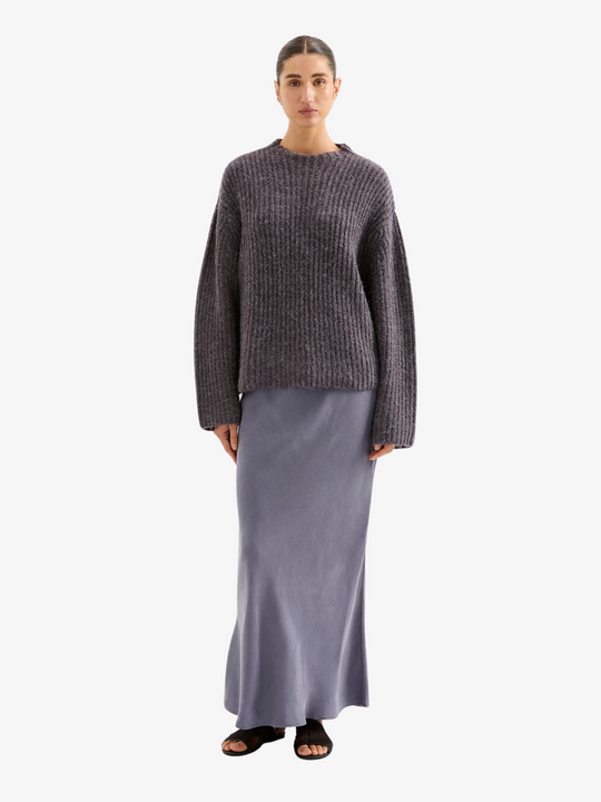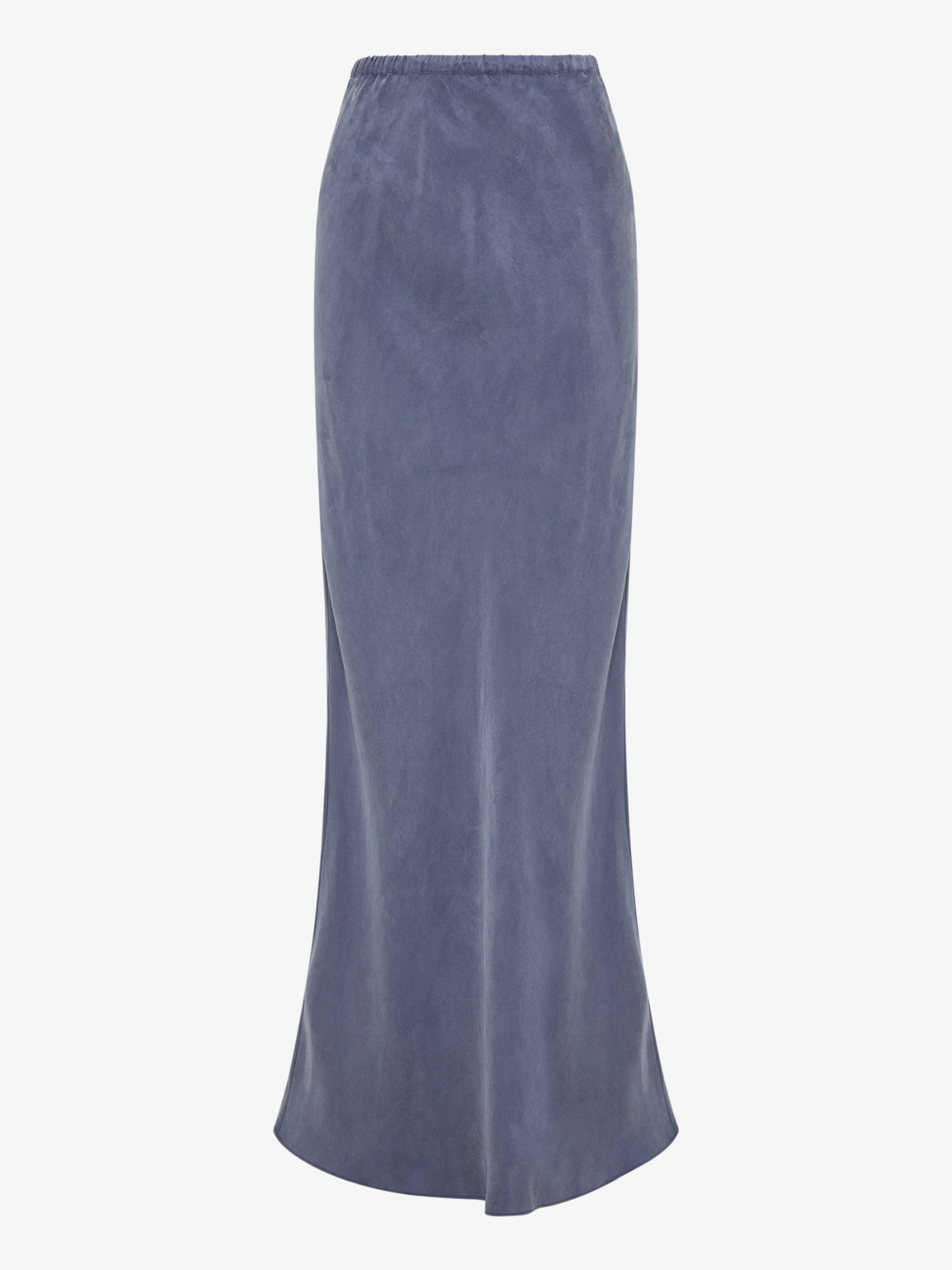The Nude Lucy Devin Tencel Maxi Skirt in Indigo embodies modern sophistication with its minimalist design and refined tailoring. Crafted from a Tencel blend fabrication, it offers a soft, sueded hand feel that drapes elegantly. The bias-cut silhouette enhances its fluidity, finishing just above the ankles for a timeless appeal. An encased elasticated waistband ensures comfort and a flattering fit, making it a versatile addition to any contemporary wardrobe.